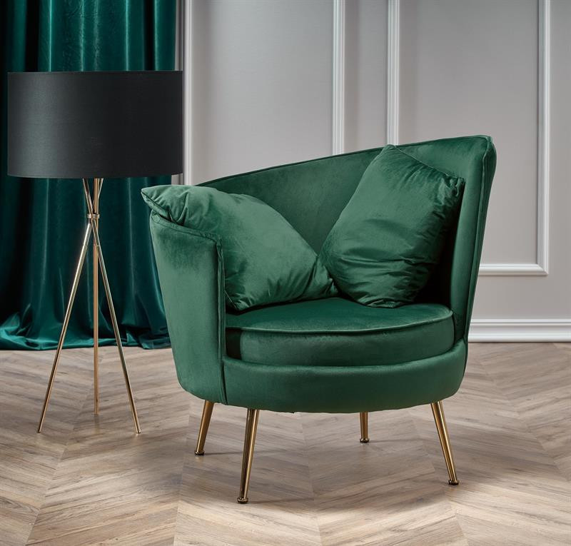 Fotoliu tapitat Almond verde – H87 cm Fotoliul Almond este tapitat cu catifea de inalta calitate, picioarele fiind realizate din metal vopsit. In stil modern, confortabil si elegant, este ideal pentru camera de zi, dormitor, zone de relaxare, cafenele, birouri. Dimensiuni: 90 90 87 44 cm Latime: 90 cm Adancime: 90 cm Înălţimea totala: 87 cm Înălţimea sezutului fata de sol: 44 cm Detalii tehnice: Cadrul este realizat din otel cromat Tapiteria este confectionata din catifea Culoare: Verde Asamblare: Produsul nu este montat. Asamblarea este rapida si usoara.