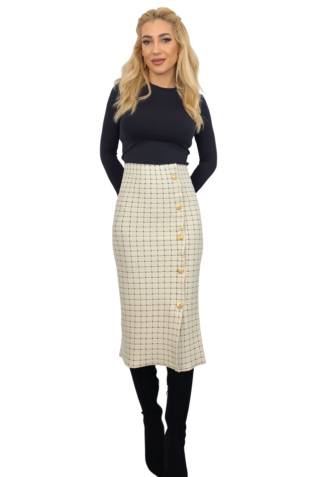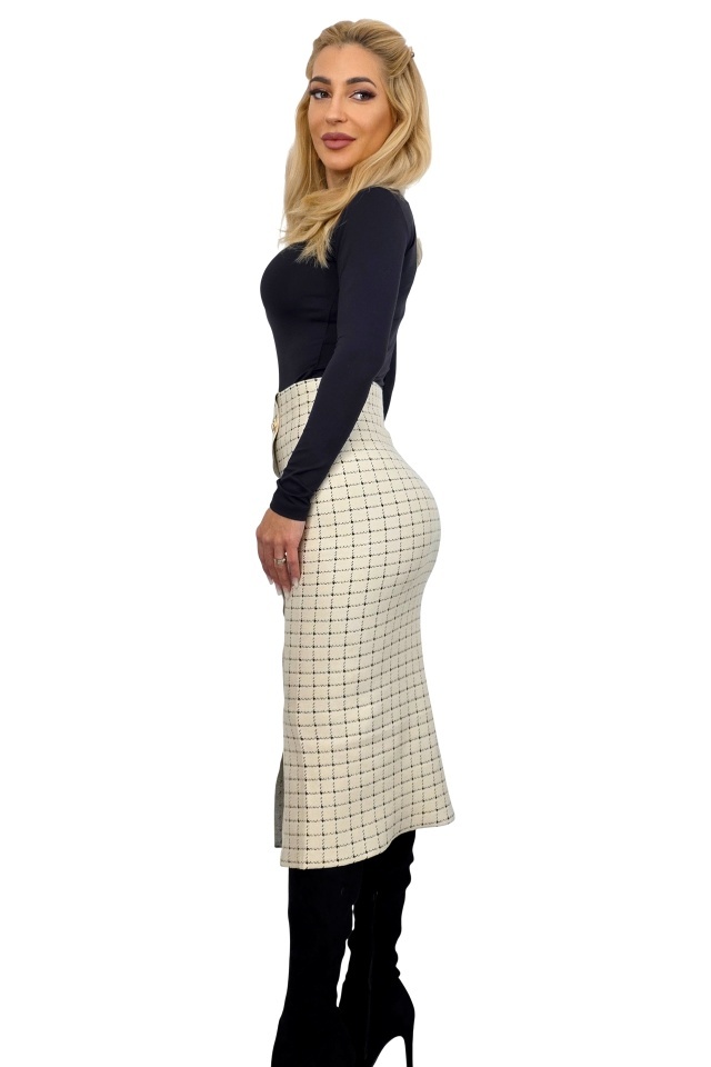 AVERRA – confort, structură și personalitate. Fustă groasa, atitudine sigură. Fusta AVERRA combină farmecul retro al imprimeului în carouri cu o linie contemporană, potrivită pentru ținutele de zi cu zi. Realizată dintr-un material gros, moale și călduros, această fustă casual oferă confort termic sporit, păstrând în același timp un aspect elegant și echilibrat. Croiul trei sferturi și designul petrecut conturează frumos silueta, adăugând lejeritate în mișcare și un aer sofisticat. Prinderea artizanală cu butoni aurii este pur decorativa si aduce o notă prețioasă , transformând o piesă practică într-un accent stilistic remarcabil. AVERRA este fusta ideală pentru femeia care iubește confortul, dar nu renunță la eleganța discretă. Poate fi combinată ușor cu malete, pulovere fine sau cămăși clasice pentru un look urban rafinat. Compozitie material: 70% vascoza, 20% poliester 10% elastan. Model prezent intr-o colectie cromatica! Varianta cu marimea S/M are lungimea 75 cm. Varianta cu marimea L/XL are lungimea 77 cm. Caracteristici principale : - Croiala trei sferturi, fara sistem de inchidere - Model: petrecut, cu prindere decorativa - Material: gros, moale, cu textură confortabilă Eticheta produsului conține informații esențiale referitoare la întreținerea și spălarea corectă a articolelor vestimentare! Imaginile Fashionforyou au caracter informativ, iar nuanta, tonul si intensitatea culorii pot varia in functie de monitor/ecran telefon.