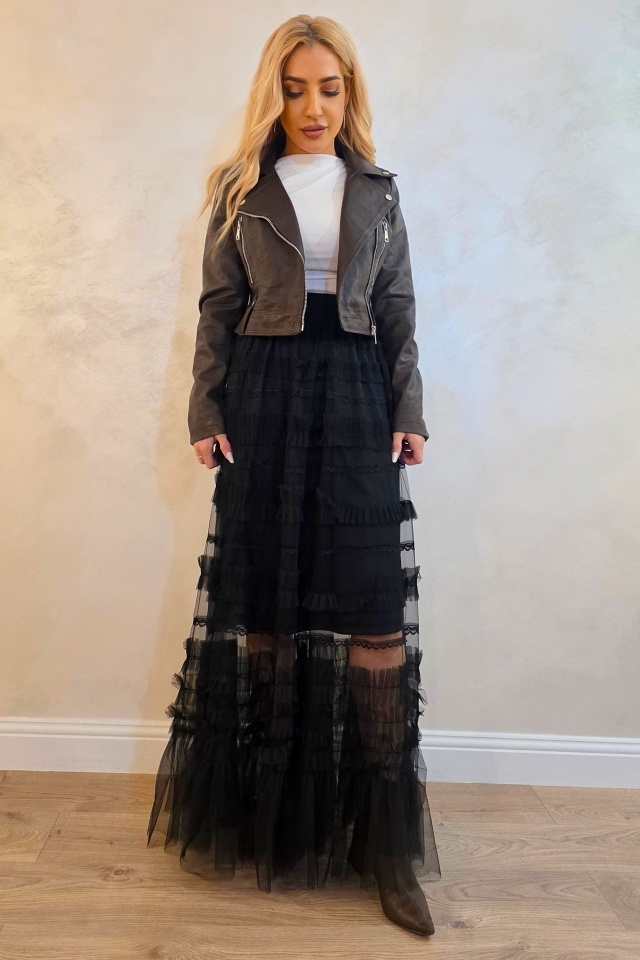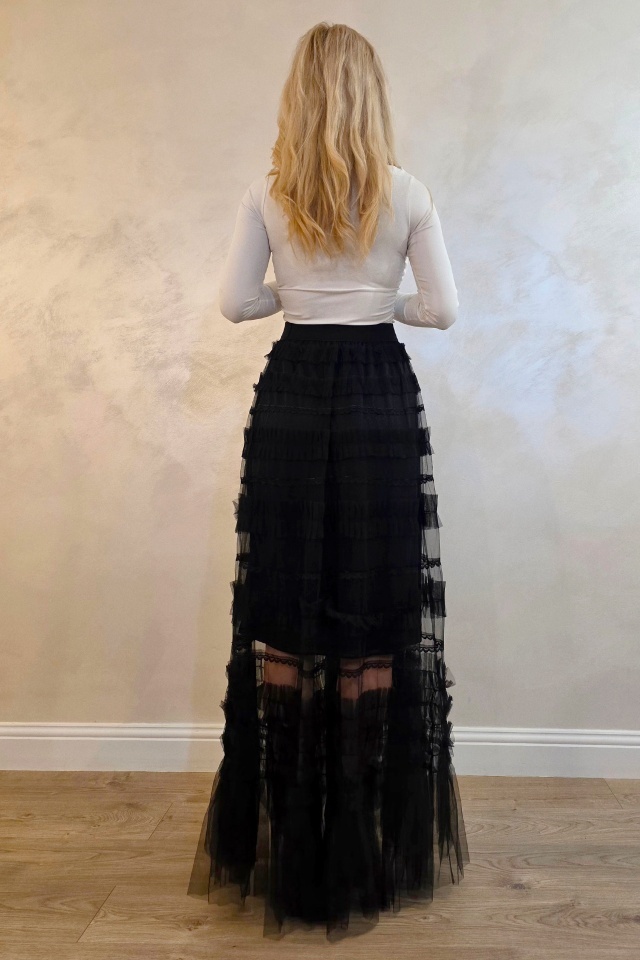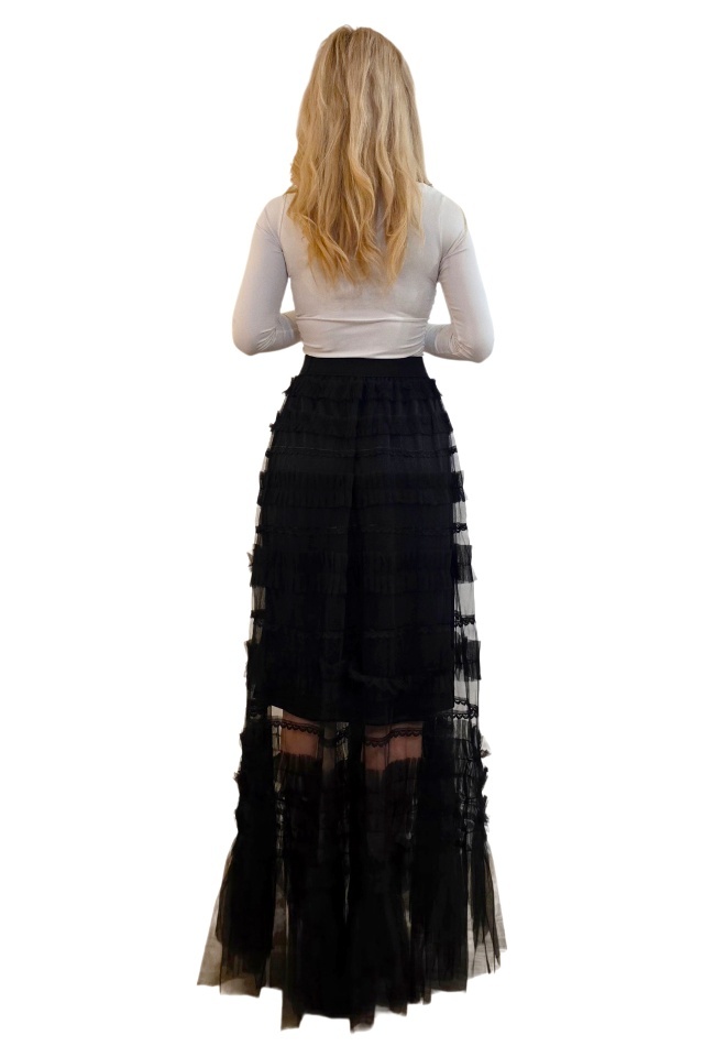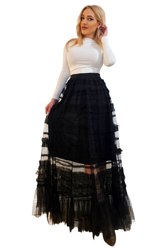 Fusta care adauga magie fiecarei tinute. Romantic modern reinterpretat in stil boho. Fusta lunga BOHO este o piesa vestimentara spectaculoasa, construita din straturi delicate de tull transparent si insertii fine de dantela care creeaza un efect vizual romantic si aerat. Designul este definit de volane dispuse pe orizontala, ce adauga textura si miscare fiecarei aparitii, oferind o silueta fluida si feminina. Materialul usor si transparent transforma fusta intr-un element statement, ideal pentru tinute boheme moderne, aparitii de vacanta sau stylinguri fashion creative. Banda elastica din talie asigura confort la purtare si adaptabilitate pe silueta, mentinand in acelasi timp linia delicata a croielii. Structura stratificata dintre tull si dantela creeaza un contrast subtil intre transparenta si textura, rezultand o piesa vestimentara cu estetica eterica si sofisticata, perfecta pentru tinute care pun accent pe volum, fluiditate si eleganta naturala. Caracteristici fusta: ? - Material aerat, transparent din tull si insertii din dantela - Croială lungă ce oferă fluiditate și mișcare - Volane decorative pe straturi - Banda elastica in talie Marime universala S/M potrivita pentru masura S sau M. Marime universala L/XL potrivita pentru masura L sau XL. Compozitie material: 100% poliester; Eticheta produsului conține informații esențiale referitoare la întreținerea și spălarea corectă a articolelor vestimentare! Imaginile Fashionforyou au caracter informativ, iar nuanta, tonul si intensitatea culorii pot varia in functie de monitor/ecran telefon.