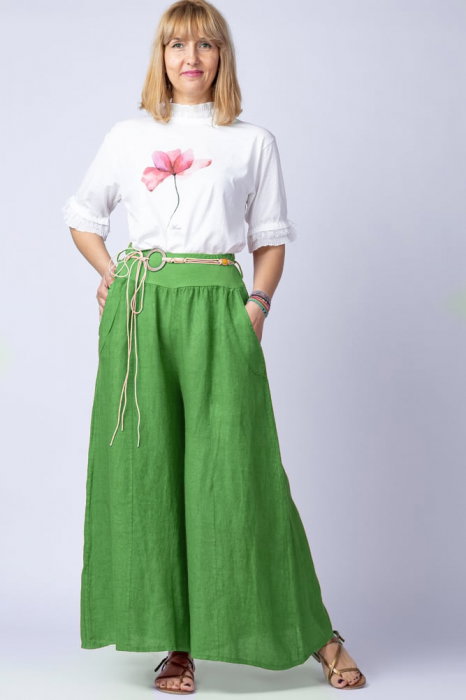 Are o banda elastica in talie Vine insotita de o curea elastica, cu catarama Buzunare laterale ascunse Material: vascoza (100%) Este talie unica si se potriveste pentru marimile: M, L si XL Dimensiuni: talie 72-100 cm, sold 150 cm, lungime...