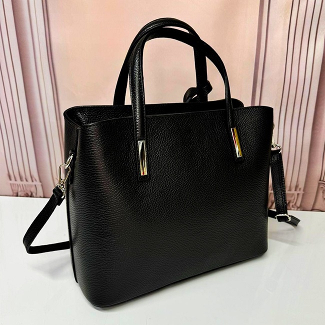 Geanta Business Tote din piele naturală, în nuanța clasică de negru, este definită de eleganța atemporală și versatilitatea care o transformă într-un accesoriu esențial pentru femeia modernă. Realizată din piele de înaltă calitate, această geantă combină perfect stilul sofisticat cu funcționalitatea, fiind ideală pentru orice ocazie, de la întâlniri de afaceri până la evenimente speciale. Nuanța de negru adaugă un plus de rafinament și profesionalism, fiind potrivită pentru orice ținută, de la business la casual. Geanta este echipată cu o curea detașabilă, permițându-ți să o porți atât pe umăr, pentru un look relaxat, cât și în mână, pentru o apariție elegantă și formală. Fabricată din piele naturală de înaltă calitate, această geantă impresionează de la prima vedere prin designul său meticulos și detaliile atent lucrate. Fiecare element al genții reflectă luxul și durabilitatea, făcând-o un accesoriu indispensabil în garderoba oricărei femei de afaceri. Această geantă este disponibilă in variante de culori clasice, permițându-ți să o asortezi cu ușurință la orice ținută. Detaliile metalice sunt realizate din materiale rezistente la zgârieturi și decolorare, adăugând un plus de eleganță și rafinament întregului design. Sistemul de închidere este sigur și eficient, pentru a-ți proteja obiectele personale. Cureaua reglabilă și detașabilă oferă flexibilitate în modul de purtare al genții. Poți alege să o porți pe umăr sau în mână, în funcție de preferințele tale și de contextul în care te afli. Indiferent de modul în care o porți, geanta Business Tote își menține aspectul elegant și profesional. Caracteristici poseta/geanta de tip Tote: - cu inchidere superioara de tip fermoar si detalii metalice argintii - interior cu doua compartimente principale si doua buzunare cu fermoar - model ce se preteaza in doua variante de purtare: pentru umar si curea detasabila pentru a fi tinuta in mana - exterior realizat din piele naturala si interior cu captuseala textila - curea detasabila cu prindere metalica - emblema decorativa pe o toarta Fabricat in Italia Dimensiuni: - lungime: 30 cm - inaltime: 40 cm - grosime: 13 cm Sfaturi de intretinere : - Curatati in mod regulat geanta cu o laveta umeda si uscata - Pastrati geanta departe de lumina directa a soarelui si de surse de caldura excesiva, deoarece acest lucru poate decolora si deteriora materialul - Pentru a preveni deformarea si deteriorarea detaliilor metalice, umpleti geanta cu hartie sau alte materiale de umplere, astfel incat sa pastreze forma originala. In general, intretinerea unei genti cu detalii metalice si material sustenabil implica evitarea expunerii la factorii de mediu duri si folosirea produselor de curatare si protectie potrivite pentru a mentine aspectul si functionalitatea gentii pe termen lung. Imaginile Fashionforyou au caracter informativ, iar nuanta, tonul si intensitatea culorii pot varia in functie de monitor/ecran telefon.