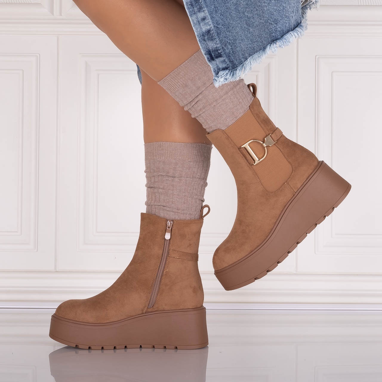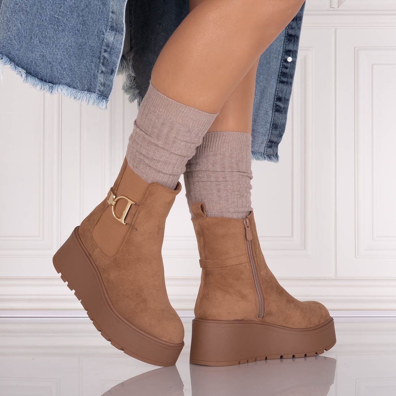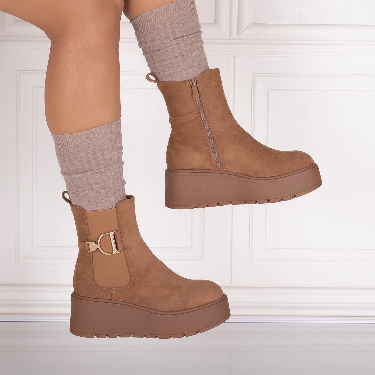 Special pentru femeile moderne care apreciază o combinație perfectă între confort și eleganță. Aceste ghete scurte au un interior căptușit, oferindu-ți o senzație plăcută pe tot parcursul zilei, mai ales în zilele mai răcoroase. Cu o platformă spate de 7 cm și o platformă față de 4 cm, ghetele Catrina îți oferă un plus de înălțime, fără a compromite stabilitatea, astfel încât să te poți simți încrezătoare și confortabil în fiecare pas. Versatilitatea ghetelor Anirta le face ideale pentru o varietate de ocazii. Culoarea elegantă și designul modern cu vârf rotund se potrivesc perfect la o multitudine de ținute. Fie că optezi pentru un look casual cu blugi și un pulover, fie că alegi o rochie elegantă pentru o seară specială, ghetele Catrina sunt alegerea perfectă pentru a-ți completa outfitul. Alege ghetele din piele ecologică întoarsă Anirta pentru a adăuga un element de stil și confort în garderoba ta. Fiecare pas va întări nu doar look-ul tău, dar și starea de bine, pregătindu-te să faci față oricăror provocări cu un zâmbet pe buze.