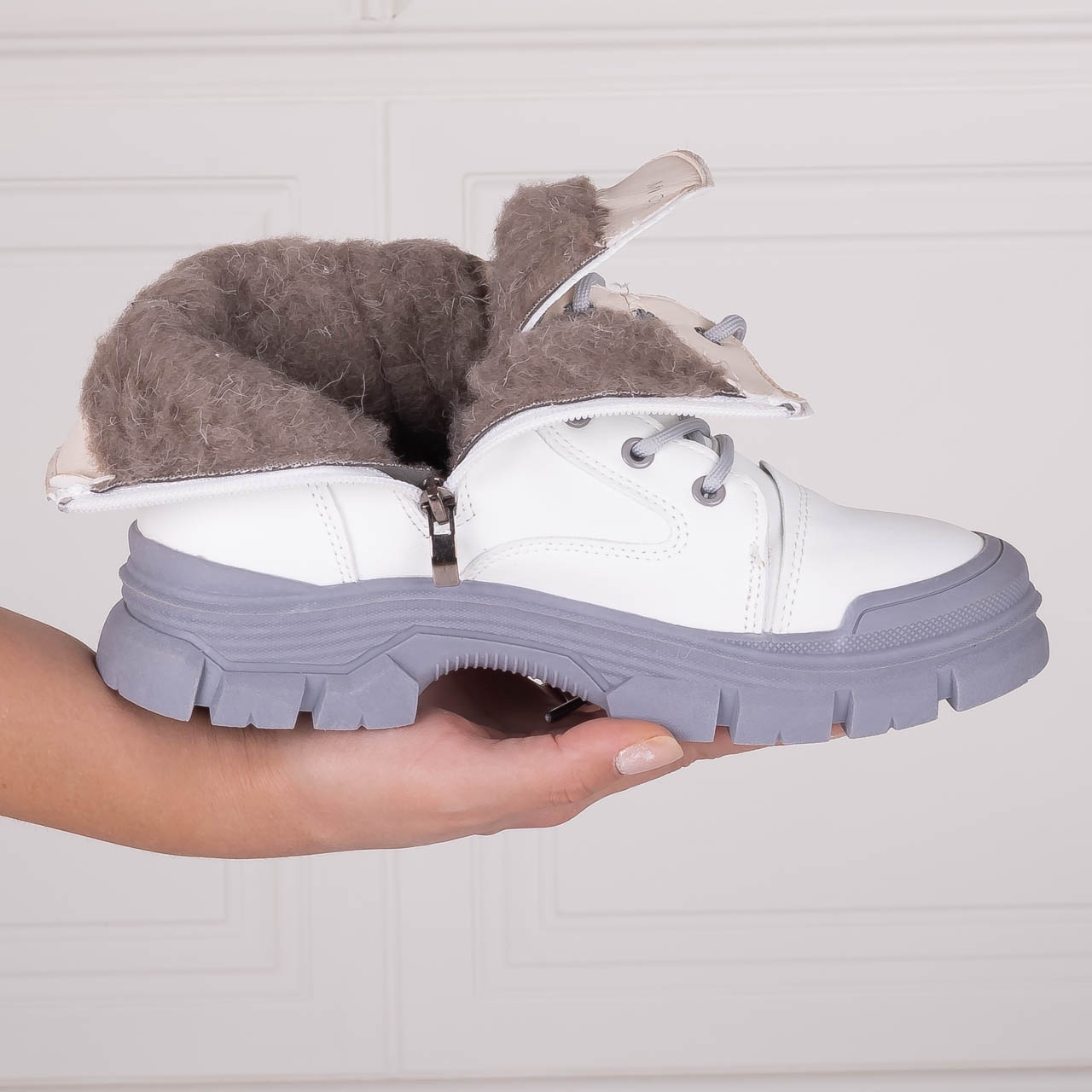 Ghete Dama Imblanite Albe din Piele Ecologica Ludica