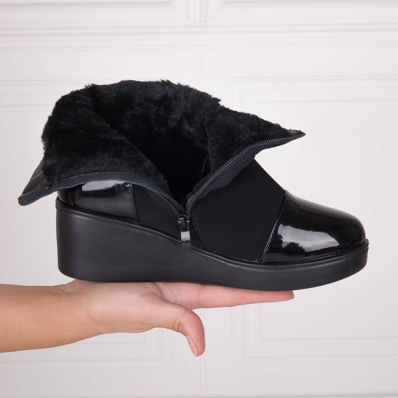 Ghete Dama Imblanite Negre din Piele Ecologica Intoarsa Sidanya