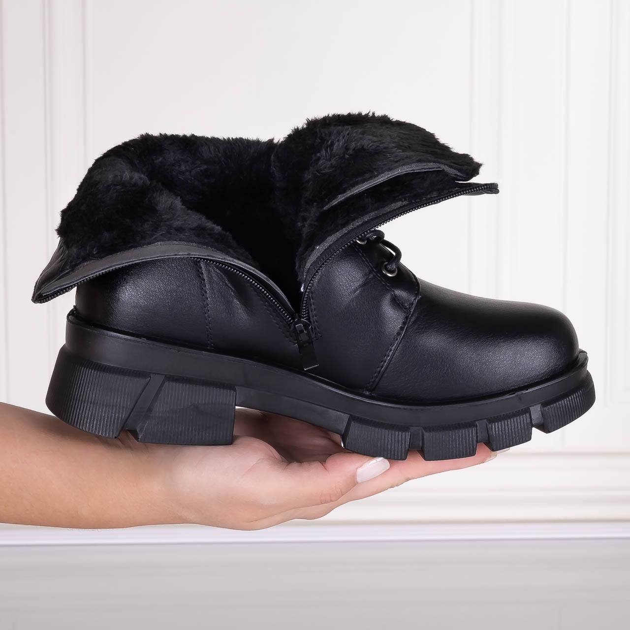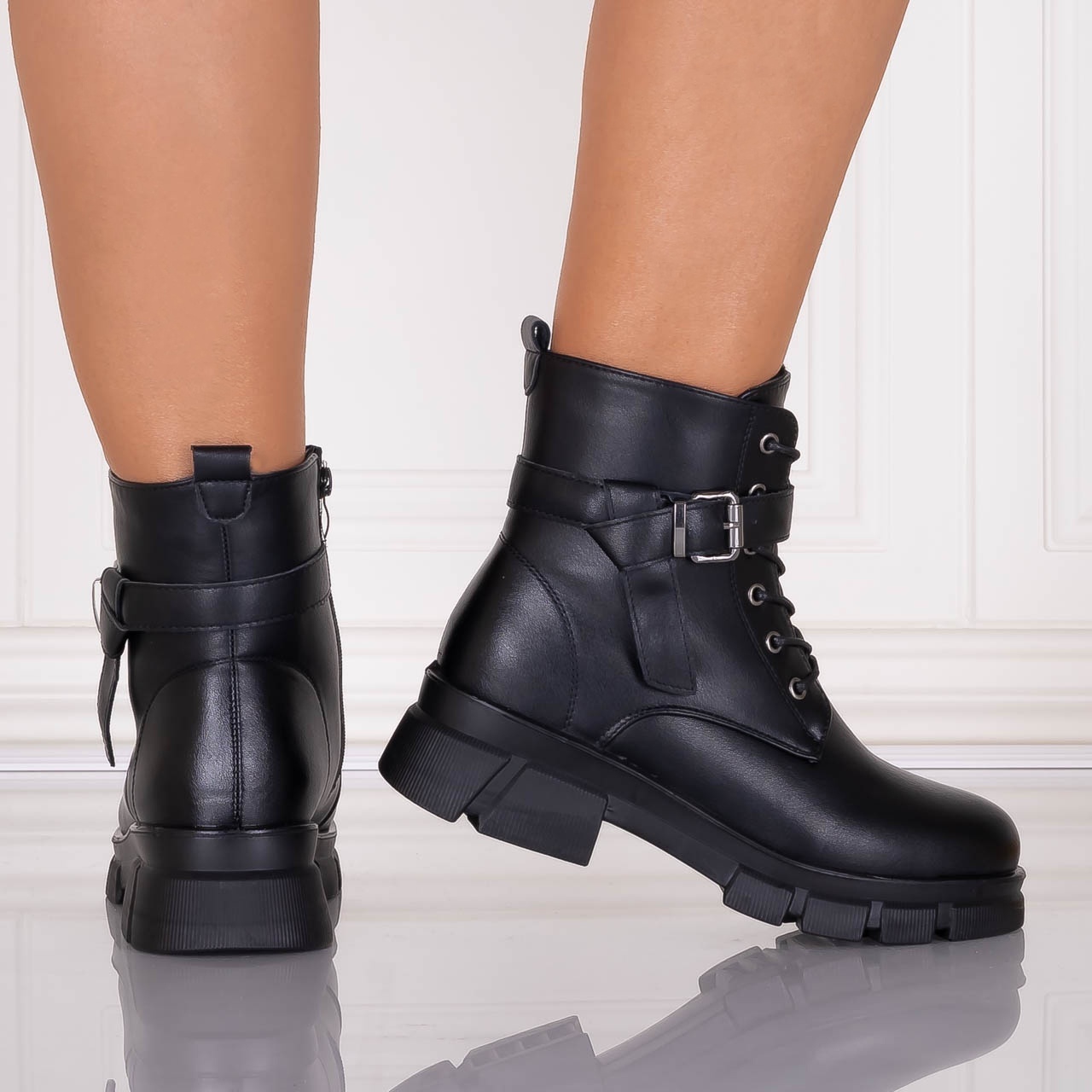 Ghetele pentru dama Ghete Dama Imblanite Negre din Piele Ecologica Madiva au fost creati pentru zilele aglomerate, in care ai nevoie de incaltaminte comod de purtat, dar suficient de eleganta pentru a-ti completa tinutele. Apropiati de stilul specific pentru ghete cu toc, acesti pantofi se potrivesc de minune atat cu tinute casual, cat si cu outfituri ceva mai office. Constructia lejera ofera libertate de miscare, iar forma talpii este gandita pentru a sprijini usor piciorul pe durata intregii zile. Textura si aspectul sunt evidentiate in fotografii, unde se observa atentia pentru detalii si modul in care modelul urmareste linia naturala a piciorului. Ii poti purta la birou, la plimbare sau la intalniri cu prietenii, fara sa simti nevoia sa ii schimbi pe parcursul zilei. Daca iti place sa imbini confortul cu un stil discret si feminin, acest model se integreaza perfect in garderoba ta.