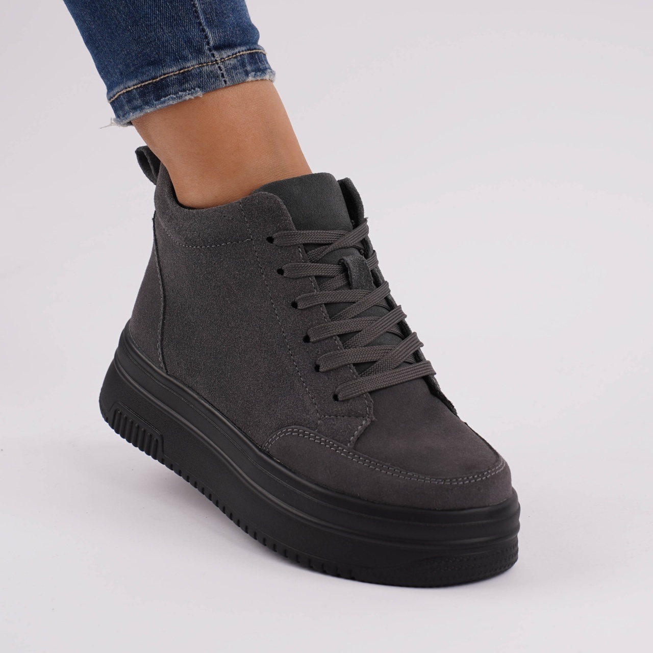 ✅ Culoare: Gri ✅ Material: piele naturala ✅Material interior: Imblanit ✅ Inaltime talpa: 4.5 cm ✅ Stil: casual