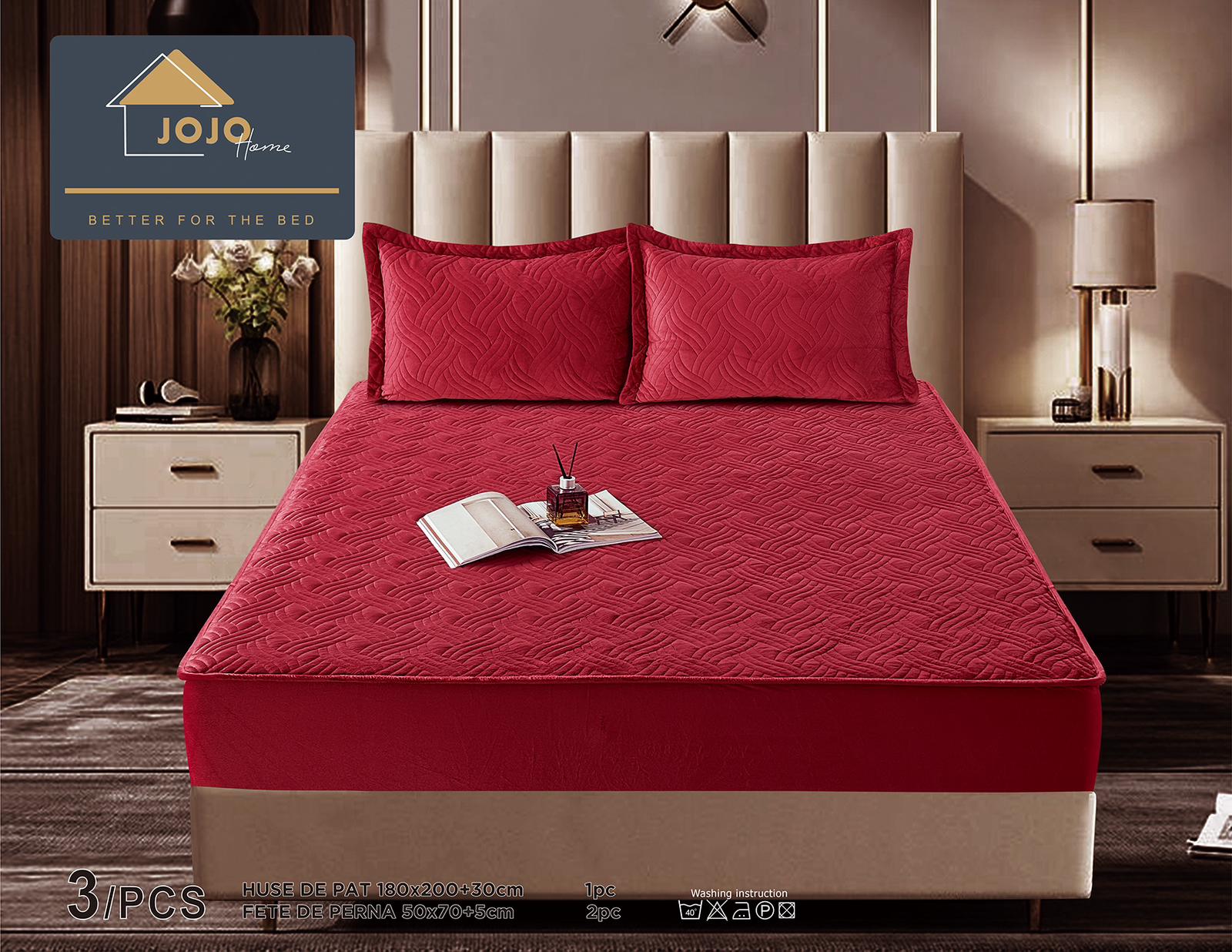 Husa Topper Matlasata din Catifea 160x200 cm + 2 Fete de Perna – Confort Premium, Fixare Perfecta, Design Elegant Rasfata-ti patul cu o husa topper matlasata din catifea fina si luxoasa, creata special pentru saltele de 160x200 cm. Acest set nu doar protejeaza salteaua, ci adauga un strat vizibil de confort si rafinament, pentru un somn cu adevarat odihnitor. Catifeaua moale si designul matlasat creeaza o experienta placuta la atingere, in timp ce elasticul perimetral asigura o f