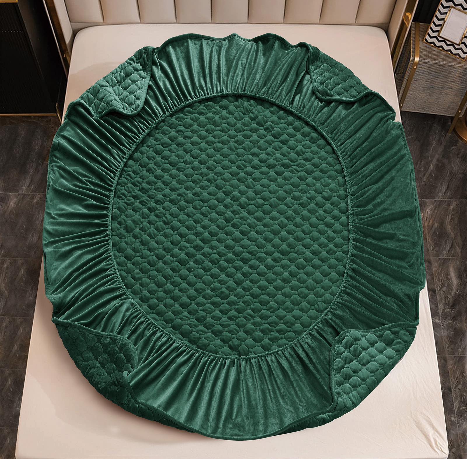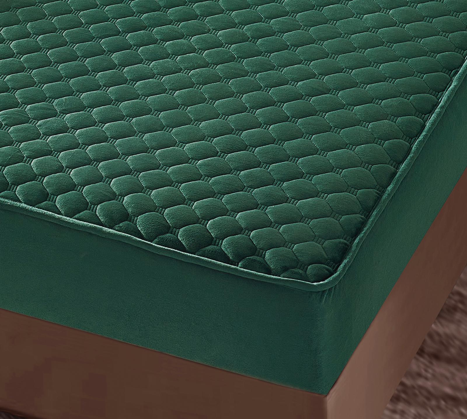 Husã matlasatã tip topper din catifea, 160x200cm + 2 fete de perna 50x70cm, verde smarald
