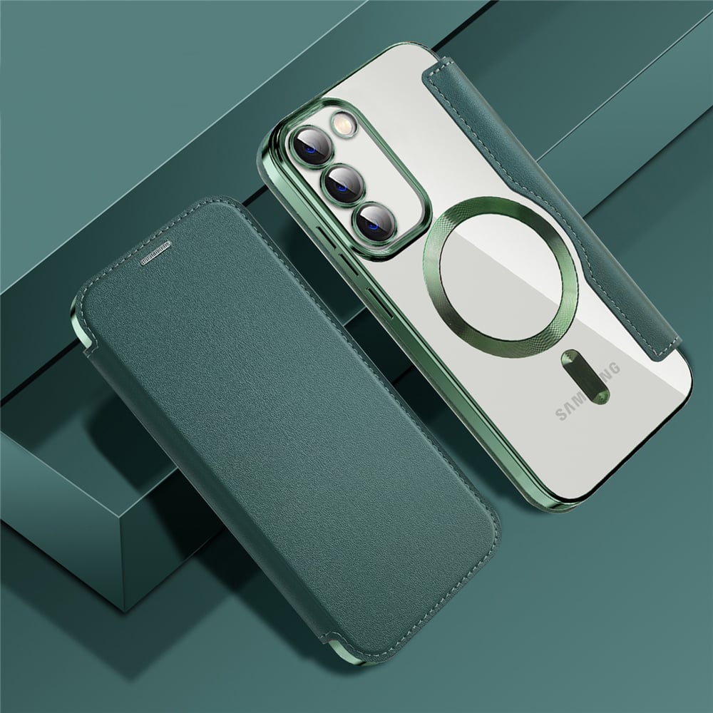 Husa tip carte full cover ofera protectie completa impotriva socurilor, prafului si zgarieturilor. Husa este compatibila Magsafe si poate fi folosita pentru o incarcare rapida si eficienta. Absoarbe socurile eficient Fast Wireless Charging Material calitativ si rezistent Protejeaza camera si marginile