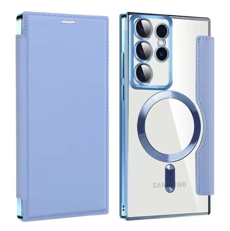 Husa Carte Magsafe, Ultra protectie, Leather Look pentru Samsung Galaxy S23 Ultra, Portofel carduri, Silicon, Albastru Deschis Engros