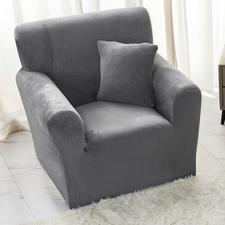 Husa Elastica, 90cm-130cm, pentru Fotoliu cu brate, Jojo Home, Catifea, Gri inchis