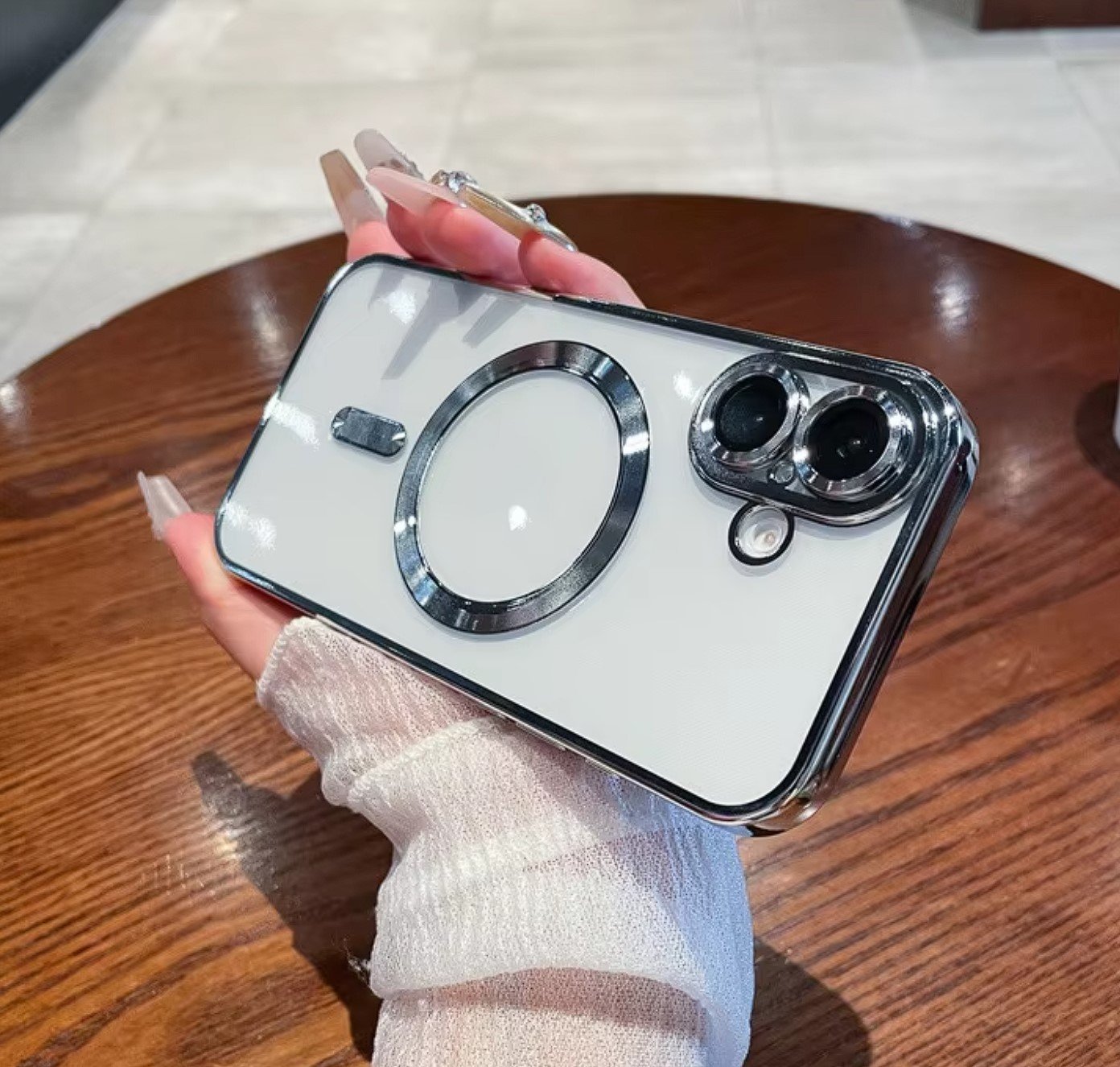 Husa Luxe Armor, Magsafe, Compatibil cu iPhone 16, Protectie camera, Silicon, Transparent, Argintiu Engros