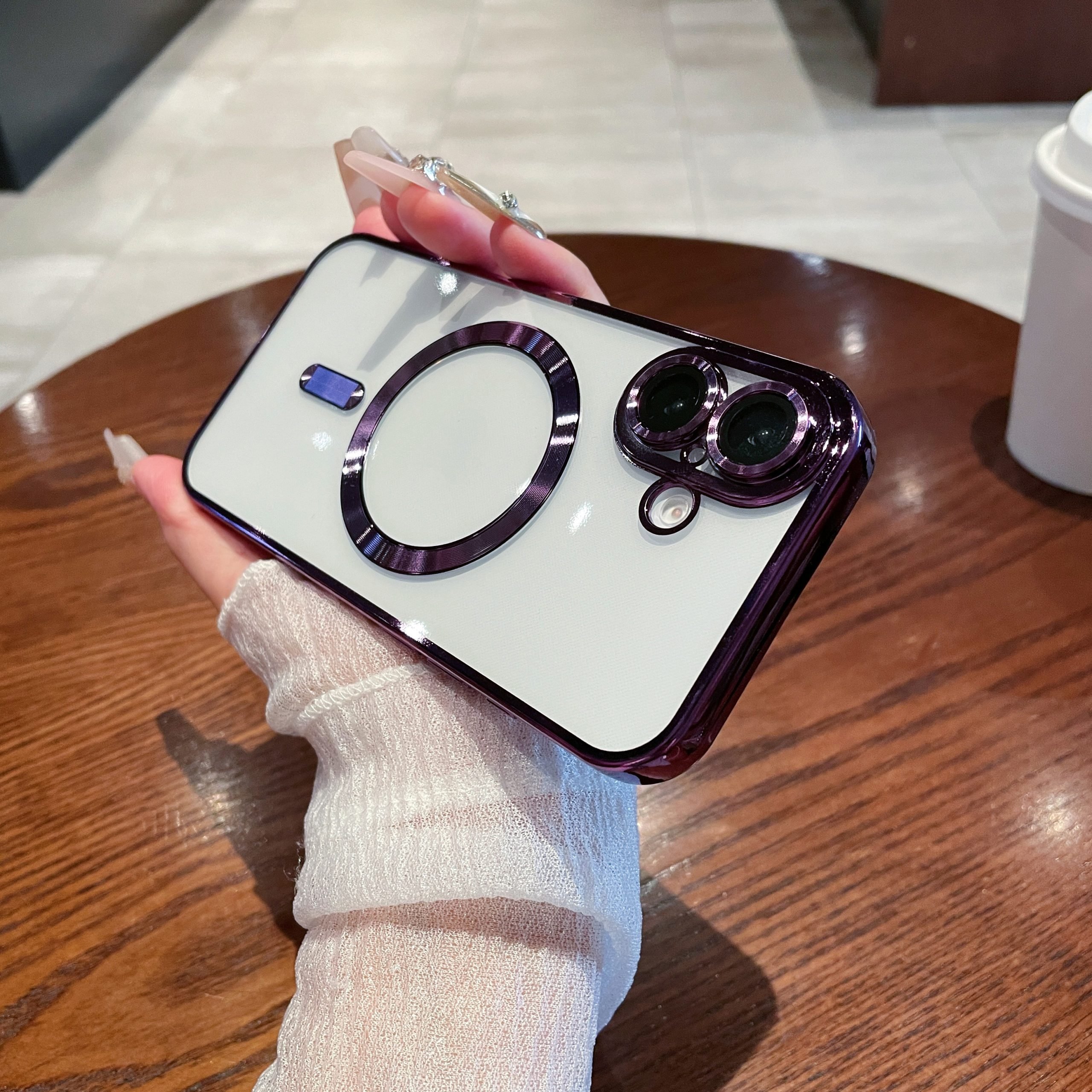 Husa pentru iPhone 16, Luxe Armor, Magsafe, Protectie camera, Silicon, Transparent, Mov Engros