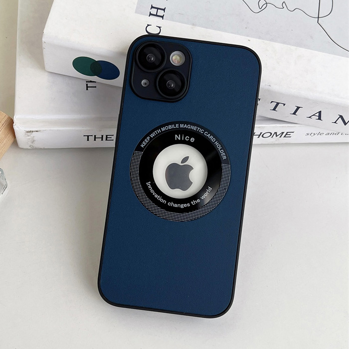 Husa Prestige, Decupaj Logo Magsafe, Compatibila cu iPhone 15 Plus, Leather look, Incarcare wireless, Bleumarin Engros