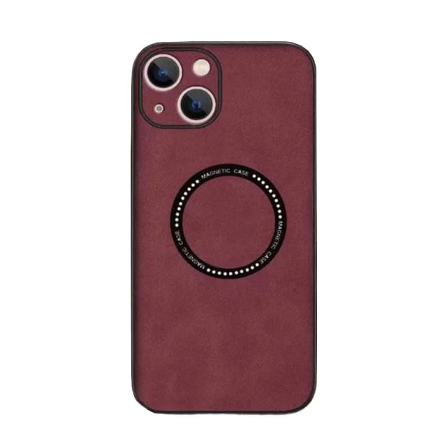 Husa Soft Armor, Magsafe, Compatibila cu iPhone 15 Plus, Leather look, Visiniu Engros