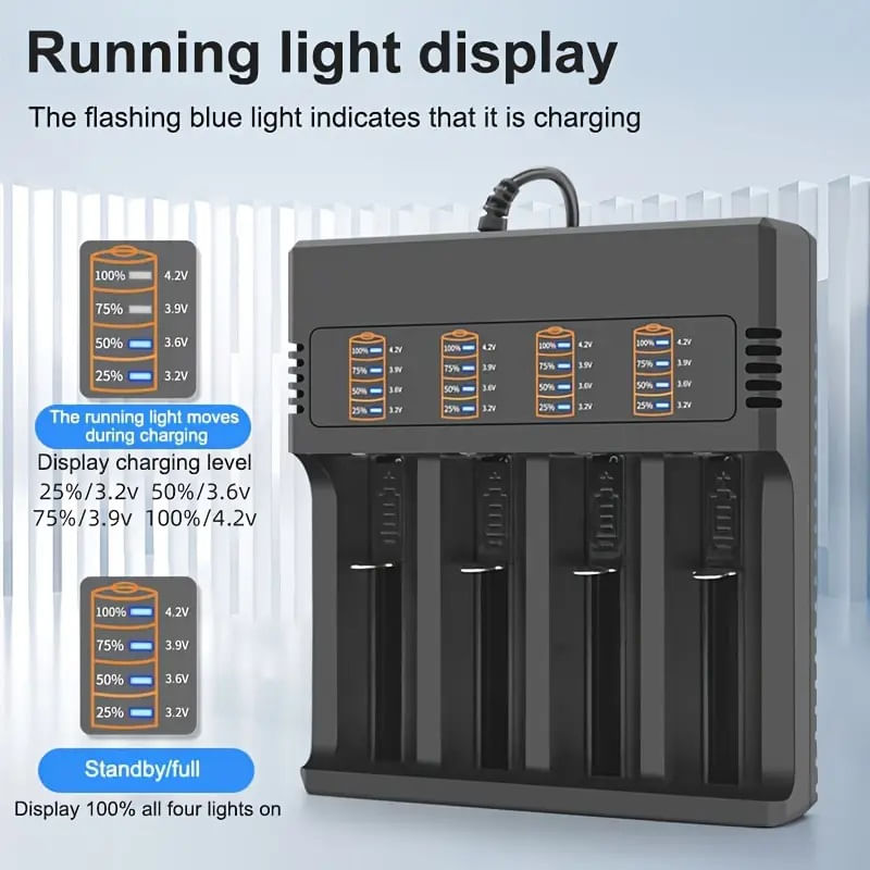 Incarcatorul Li-ion MS484AX este un dispozitiv versatil si eficient, conceput pentru a incarca acumulatorii Li-ion de tip 18650 intr-un mod rapid si sigur. Cu cele 4 sloturi disponibile, acest incarcator permite incarcarea a pana la 4 acumulatori simultan, facilitand astfel procesul de alimentare a dispozitivelor care necesita astfel de surse de energie.Designul sau compact si modern, din plastic negru, il face potrivit pentru utilizare atat acasa, cat si in deplasare. Statia de incarcare 18650 dispune de 4 porturi, ce pot fi utilizate pentru a reincarca acumulatorii Li-ion 18650, fie ca este vorba de modele precum 10440, 14500, 16340, 16650, 14650, 18350, 18500 sau 18650.Acest incarcator li-ion 3.7V este echipat cu multiple sisteme de protectie impotriva supraincarcarii, supracurentului, supratemperaturii, scurtcircuite, conectarii inversa sau supradescarcarii, asigurand astfel siguranta maxima in utilizare. De asemenea, incarcatorul dispune de functie de monitorizare a nivelului de incarcare, permitand utilizatorului sa aleaga intre diferite niveluri de incarcare: 25, 50, 75 sau 100.Cu o tensiune de alimentare de 220V si o curent de 4.2A, acest incarcator li-ion 18650 este ideal pentru utilizarea la retea, oferind avantajul unei incarcari rapide si eficiente a acumulatorilor. Indiferent daca esti acasa sau in calatorie, statia de incarcare 18650 poate fi partenerul tau de incredere pentru mentinerea dispozitivelor tale alimentate si gata de utilizare.In concluzie, incarcatorul Li-ion MS484AX este alegerea perfecta pentru cei care cauta un dispozitiv performant, sigur si usor de folosit pentru incarcarea acumulatorilor Li-ion 18650. Cu multiple functionalitati si sisteme de protectie integrate, acest incarcator te va ajuta sa iti mentii dispozitivele mereu incarcate si functionale, indiferent de situatie. Alege calitatea si eficienta cu incarcatorul li-ion MS484AX!Specificatii:Material: PlasticCuloare: NegruModel: MS484AXTip produs: IncarcatorProducator: MRGLungime: 135 mmLatime: 120 mmInaltime: 36 mmGreutate: 187 gSloturi reglabile: DaFormat baterie/acumulator: 10440,14500,16340,16650,14650,18350,18500,18650Sloturi incarcarcare: 4Tip baterie/acumulator: Lithium-IonLungime cablu (mm): 65 cmLed indicator: VerdeScop utilizare: Incarcare acumulatoriSisteme de protectie: Supraincarcare, supracurent, supratemperatura, scurt circuit, conectare inversa, supradescarcareUtilizat pentru: UniversalVoltaj: 4.2VTensiune alimentare: 220 VNumar bucati/set: 1Curent maxim de incarcare: 4 AAlimentare: La reteaAfisare Nivel Incarcare: 25,50,75,100Pachetul contine:- 1x Incarcator Li-ion MS484AX 3,7V 4 Sloturi 4A 220V- 1x Cutie/Ambalaj de prezentare