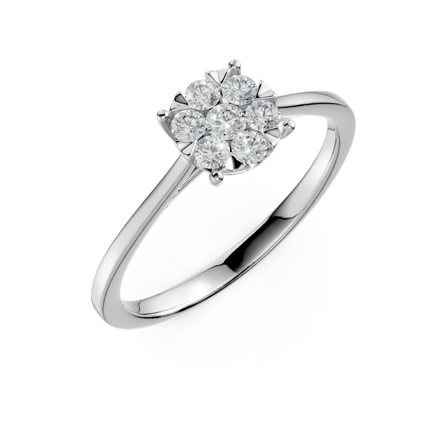 Celebreaza iubirea cu Love Stories. Stralucirea diamantelor prinse in montura inelului de logodna din aur alb cu diamante de 0.35ct este scanteia cu care incepe povestea voastra. Marcheaza cel mai special moment din viata voastra cu o bijuterie TEILOR.