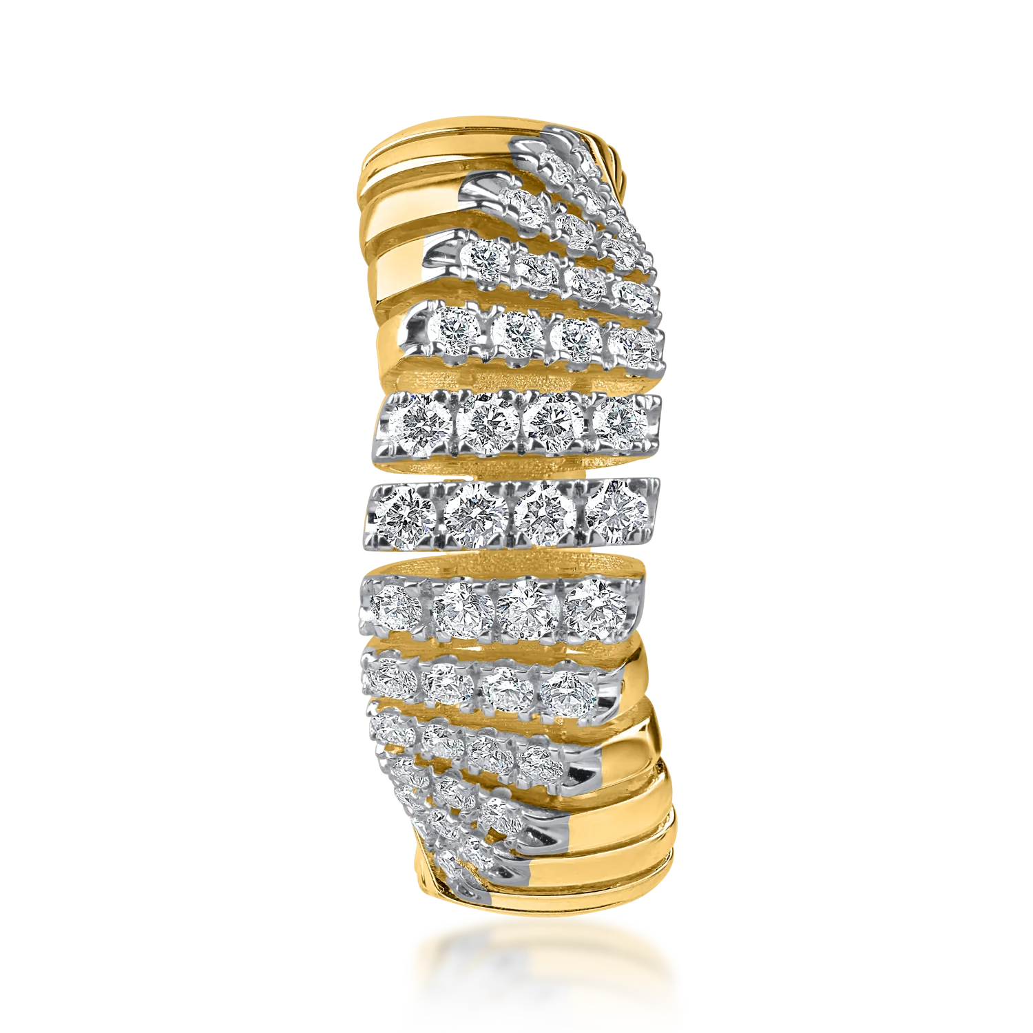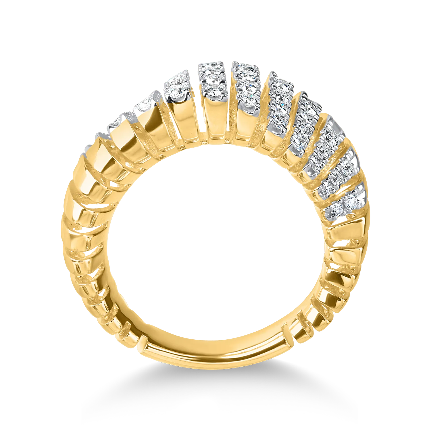 Feminitatea capata noi forme de expresie. Un inel din aur galben cu diamante microsetting de 0.6ct in care se intalnesc nuante si reflexii vibrante, o declaratie stilistica plina de expresivitate. Intra in lumea seducatoare TEILOR. O lume in care se regasesc cele care adora sa-si depaseasca limitele.