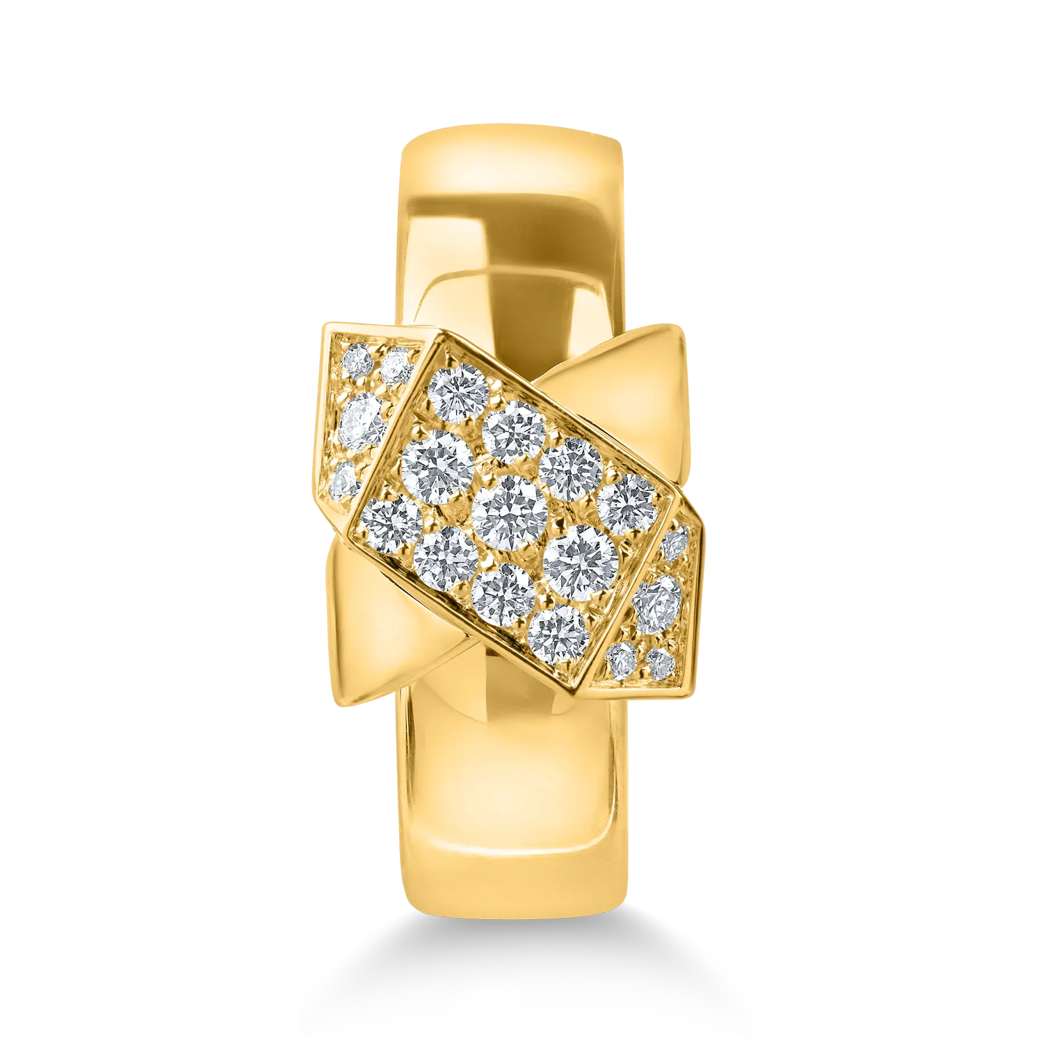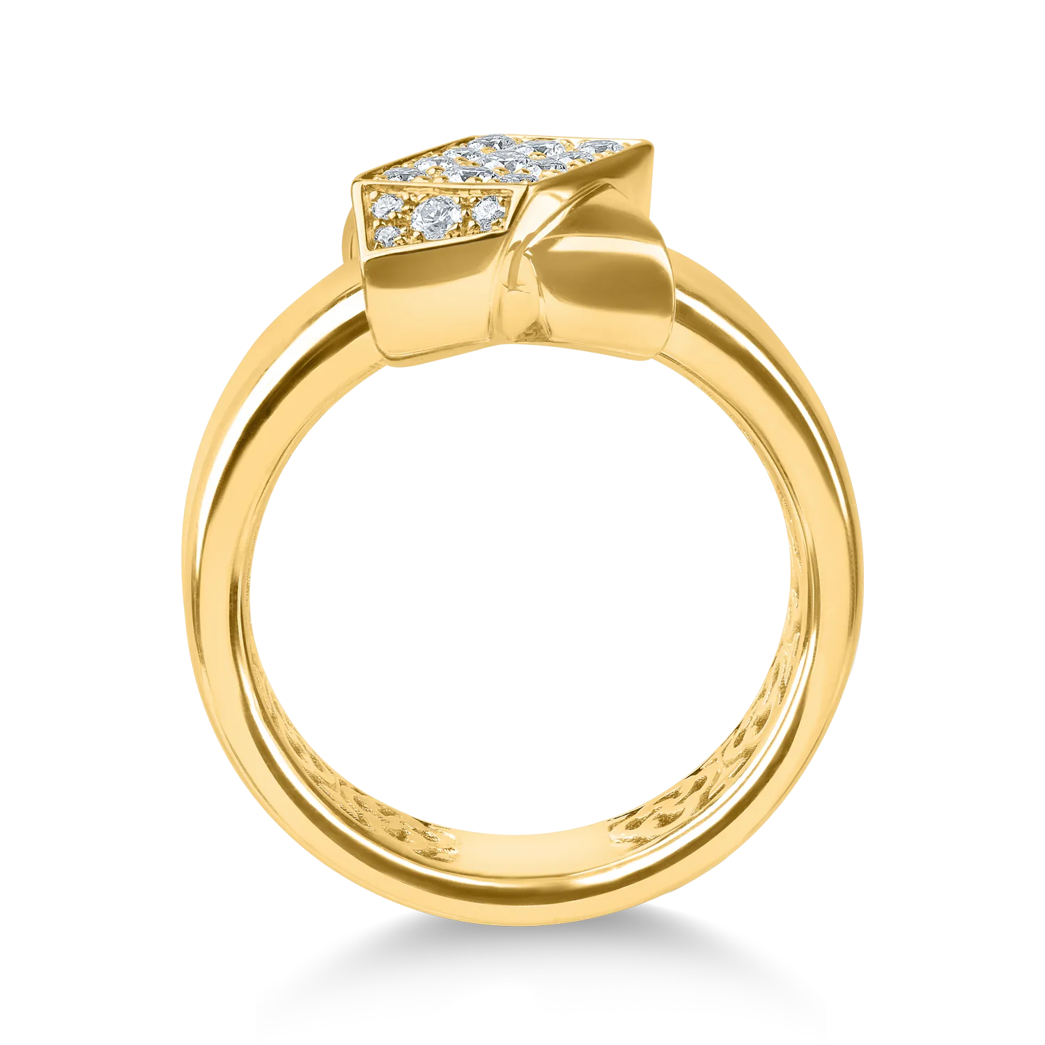 Feminitatea capata noi forme de expresie. Originalitatea si rafinamentul se intalnesc in acest inel geometric din aur galben cu diamante de 0.2ct creat pentru a-ti accentua farmecul personal. Descopera frumusetea acestei piese si spune-ti povestea cu TEILOR. O lume in care cream povesti unice alaturi de tine.
