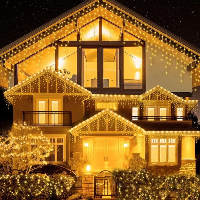 Instalatie de Craciun tip franjuri Ploaie de lumini cu Flash - lungime 10 metri Instalatiile sunt tip perdea luminoasa cu franjuri inegali si sunt interconectabile, putand fi prelungite. Instalatia de Craciun poate fi utilizata atat in spatii de interior cat si la exterior, protejata de intemperii aproximativ 250 led-uri dispuse pe fire cu lungimi diferite dispunerea ledurilor este secventiala franjurii sunt dispusi ciclic insiruirea repetandu-se alimentare 220 V ~ 50 Hz lungime instalatie: 10 metri se pot monta in serie ( pana la 4 instalatii) - prin intermediul adaptorului poate fi utilizata atat in spatii de interior cat si la exterior, protejata de intemperii Atentionari speciale: Indiferent de modelul achizitionat, instalatiile trebuie protejate de actiunea directa a ploii si a ninsorii (pericol de scurtcircuit, flama, topire a firului. Garantia nu acopera astfel de defectiuni daca produsele nu au fost ferite de apa. Conectarea la 220V se va face la o priza protejata de intemperii si de umezeala. Orice tip de conector va fi protejat de apa. A nu se lasa in functiune nesupravegheat ori la indemana copiilor! Nu interveniti asupra aparatului cand este conectat la priza. Atentie! Instalatia are o lungime de 10 metri franjuri + 1 metru cablu de alimentare.