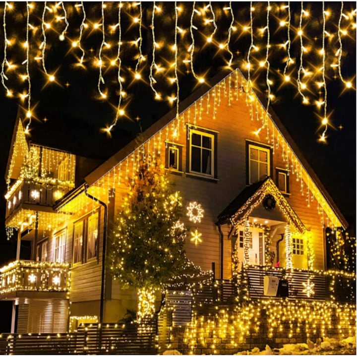 Instalatie franjuri, 300 LED, 12 metri Este interconectabila si are 8 jocuri de lumini Instalatie Craciun 12 metri franjuri cu 300 de leduri pentru exterior. Instalatiile sunt tip perdea luminoasa cu franjuri inegali si sunt interconectabile, putand fi prelungite. Instalatia de Craciun poate fi utilizata atat in spatii de interior cat si la exterior, protejata de intemperii. alimentare 220 V ~ 50 Hz special creata pentru a fi montata in serie - prin intermediul adaptorului (stecherului) inclus 8 jocuri de lumini (combination, in waves, sequential, slow glow, chasing/ flash, slow fade, twinkle/ flash, steady on)