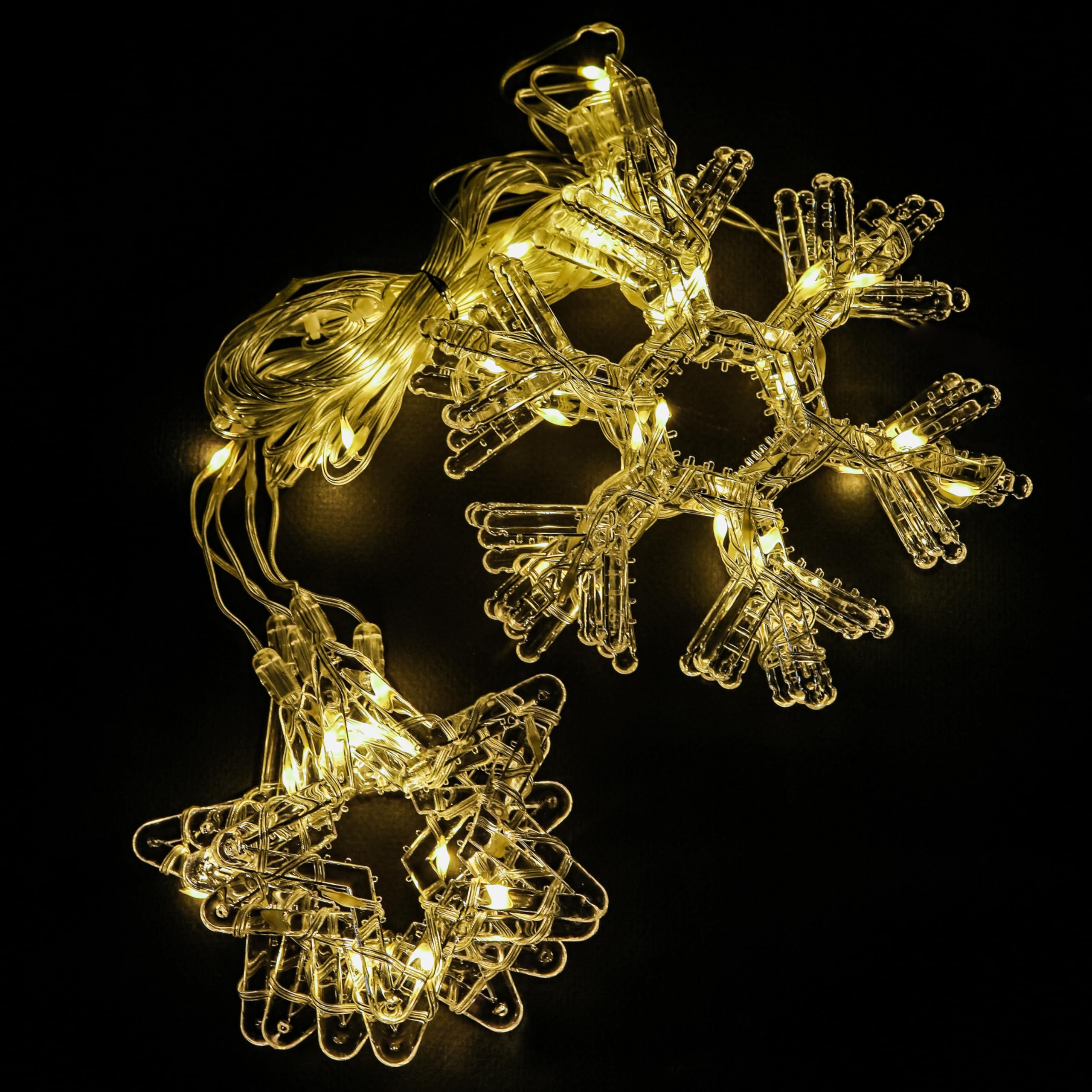 Instalatie Perdea Fulgi de Zapada si Stele Alb cald, 3 metri 120 LED, Decoratiuni de Craciun RGB 5 fulgi de zapada si 5 stelute, cu o lungime de 3 metri si posibilitate de extindere, care vor lumina spatiul dumneavoastra cu un variator pentru a crea cea mai frumoasa atmosfera de Craciun. Consum redus de energie comparativ cu alte tehnologii de iluminat Durata de viata mare Eficienta ridicata, deoarece isi pastreaza performanta 100% pana la sfarsit Nivel ridicat de luminozitate si intensitate Emisie zero de radiatii – prietenosi cu mediul Emisie scazuta de caldura Nu se ard cand sunt fluctuatii in reteaua electrica