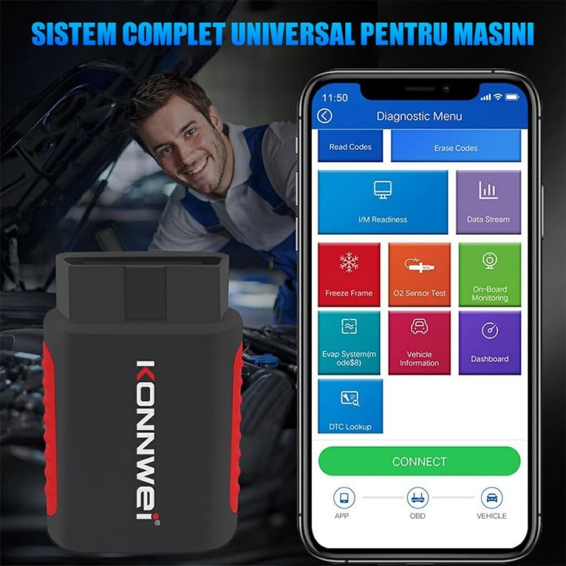Konnwei Kdiag este un instrument de diagnosticare versatil pentru autovehicule, care ofera o gama larga de functii pentru diagnosticarea si depanarea problemelor autovehiculelor. Suporta diverse protocoale OBD II, ofera streaming de date in direct si va permite sa cititi si sa stergeti codurile de diagnosticare a defectiunilor. Cu interfata sa prietenoasa de utilizare a unei aplicatii gratuite cu actualizari pe viata si functionalitati cuprinzatoare, poate fi un instrument valoros atat pentru proprietarii de vehicule, cat si pentru mecanicii profesionisti. KONNWEI KDIAG KDIAG Full System OBD2 este compatibil cu vehiculele din SUA, Europa si Japonia si suporta o diagnoza completa a sistemului, inclusiv verificarea luminoasa a motorului, ABS, transmisie, SAS, ESP, TPMS si alte sisteme.Are multe functii speciale pentru mai mult de 31 de marci de masini de serie. Exemplele includ resetarea uleiului, resetarea schimbarii TPS, stergerea codului EPB (frana de parcare electrica), baterie, DPF, SAS, codificarea injectoarelor, sasiu sau chiar reglarea luminilor. Aceste functii speciale sunt concepute pentru Skoda, Seat, Volkswagen, AUDI, Mercedes-Benz, Ford, Toyota, Mazda, Honda, Nissan, dar si pentru Acura, Bentley, Bugatti, Buick, Cadillac, Lexus, , Lamborghni, Mini, Rolls-Royce, Maybach, Infiniti, GM, Chevrolet, GMC, Pontiac, Saturn, Hummer, Hoden, LincoIn, Mercury si altele.Pentru KONNWEI KDIAG a fost dezvoltata o aplicatie gratuita speciala, conceputa pentru telefoane mobile si tablete cu sistem de operareAndroid si iOS. Spre deosebire de alte aplicatii, aplicatia KDIAG nu mai are taxe ascunse pentru actualizari sau pentru extinderea functiilor speciale pentru alte modele de vehicule. Compatibilitate larga: KDIAG este conceput pentru a diagnostica toate sistemele vehiculelor cu alimentare de 12 V si protocol OBD II cu 16 pini (J1850 VPM, J1850PWM, ISO9141, KWP 2000 si CAN). Acesta suporta diagnosticarea sistemelor de motor pentru autoturismele din 1996 si camioanele usoare fabricate incepand cu 2005.Diagnosticarea intregului sistem: KDIAG estecompatibil cu vehiculele din SUA, Europa si Japonia si suporta diagnoza pentru toate sistemele, inclusiv motor, ABS, transmisie, SAS, ESP, TPMS si altele. De asemenea, ofera functii speciale, cum ar fi resetarea intervalului de service, resetarea TPS, stergerea codurilor de eroare EPB, calibrarea bateriei, DPF, SAS, codificarea injectoarelor, setarile sasiului si ale iluminatului pentru peste 31 de marci de vehicule.Actualizare gratuita a aplicatiei pe viata: KDIAG Mini vine cu propria aplicatie complet sustinuta, fara taxe ascunse suplimentare. Descarcarea aplicatiei este gratuita. De asemenea, dispune de functii OBD2 complete pentru citirea si stergerea codurilor de eroare. Compatibila cu majoritatea vehiculelor compatibile OBDII din SUA, Europa si Asia incepand cu 1996 si accepta sistemele de operare Android si iOS.Caracteristici: Functioneaza pe toate vehiculele fabricate incepand cu 1996 care accepta protocoalele OBD II si CAN. Suporta o gama larga de protocoale OBD II, ceea ce va permite sa diagnosticati majoritatea vehiculelor de pe piata. Poate citi si sterge DTC-urile, reseta starea OBD II si poate opri lumina MIL. Ofera date in flux live care va permit sa monitorizati diversi parametri in timp real. Suporta date Freeze Frame, care ajuta la diagnosticarea problemelor legate de emisii. Poate prelua numerele VIN si de calibrare ale vehiculului. Ofera monitorizarea avansata OBD II Modul 6-On-Board de monitorizare OBD II. Poate afisa erorile legate de emisii, poate citi fluxul de date PCM si poate stoca si reda datele. Suporta mai multe limbi, inclusiv engleza, franceza, spaniola, portugheza, germana, rusa, poloneza si italiana. Poate fi actualizat la cel mai recent sistem de operare prin intermediul internetului. Permite imprimarea datelor de catre computer. Include functia de indicare a bateriei.Protocoale acceptate: SAE J1850 PWM (41,6Kbaud). SAE J1850 VPW(10,4 Kbaude) ISO9141–2(5 baud init,10.4Kbaud) ISO14230–4 KWP (5 baud init, 10,4 Kbaud) ISO14230–4 KWP(rapid init, 10,4 Kbaud) ISO15765–4 CAN(11bit ID,500 Kbaud) ISO15765–4 CAN(29bit ID,500 Kbaud) ISO15765–4 CAN(11bit ID,250 Kbaud) ISO15765–4 CAN(29bit ID,250 Kbaud)Nota * Setarile, resetarile si alte functii speciale depind de tipul, modelul si anul vehiculului si este posibil ca acestea sa nu fie acceptate de vehiculul dumneavoastra!Specificatii: Conexiune Bluetooth 5.0. Sursa de alimentare: 9 – 18 V ( de la priza de diagnosticare) curent de functionare: mai putin de 100mA Material: plastic ABS dimensiuni: 71×48×24 mm Certificare: CE, FCC, RoHS.