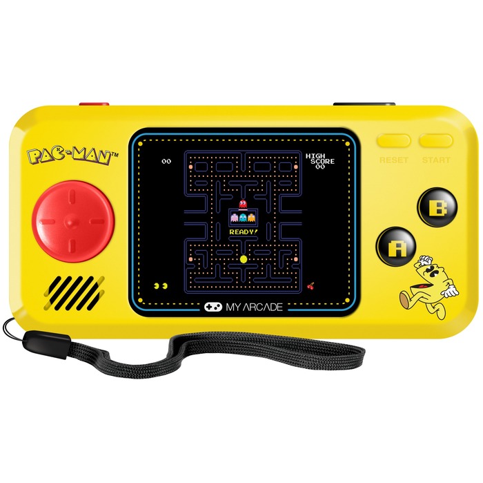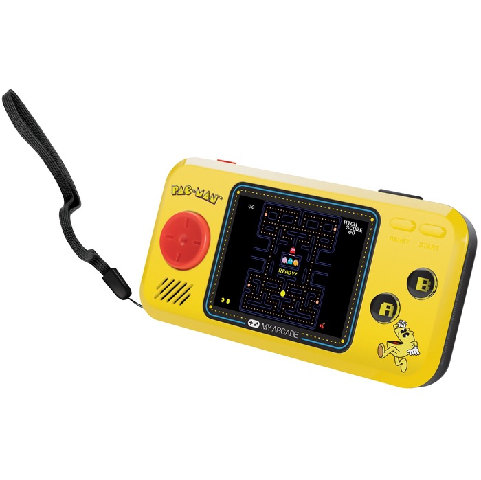 Joc arcade - Pocket Player - Pac-ManEcran color cu iluminare de 2,75Alimentat de 4 baterii AAA (nu sunt incluse) sau de un cablu Micro-USB (nu este inclus).Difuzor frontal integrat, control al volumului si mufa pentru casti de 3,5 mm.Design ergonomic pentru ore intregi de joc confortabil.Dimensiunea compacta si cablul inclus permit redarea in miscare.Include trei titluri interesante: Pac-Man ™Pac-Mania ™Pac-Panic ™
