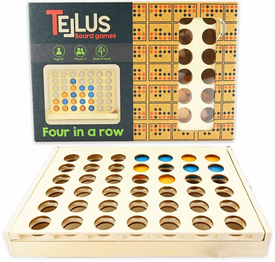 Poti sa-ti invingi adversarul?Acest joc de masa din lemn, pe langa faptul ca este distractiv si interesant, dezvolta motricitatea fina si gandirea logica a copiilor.Regulile sunt urmatoarele: plasand jetoane in baza, fiecare jucator trebuie sa aranjeze 4 cipuri de culoarea lui (albastru sau galben) unul langa celalalt, inainte de adversarul sau, indiferent daca este orizontal, vertical sau diagonal. Participantul care isi creeaza prima linie sau coloana castiga competitia. Jocul este potrivit pentru copii cu varsta peste 4 ani si pot participa doi jucatori. Realizat din materiale ecologice, este cadoul ideal pentru orice copil curios!Dimensiune: 25 cm.