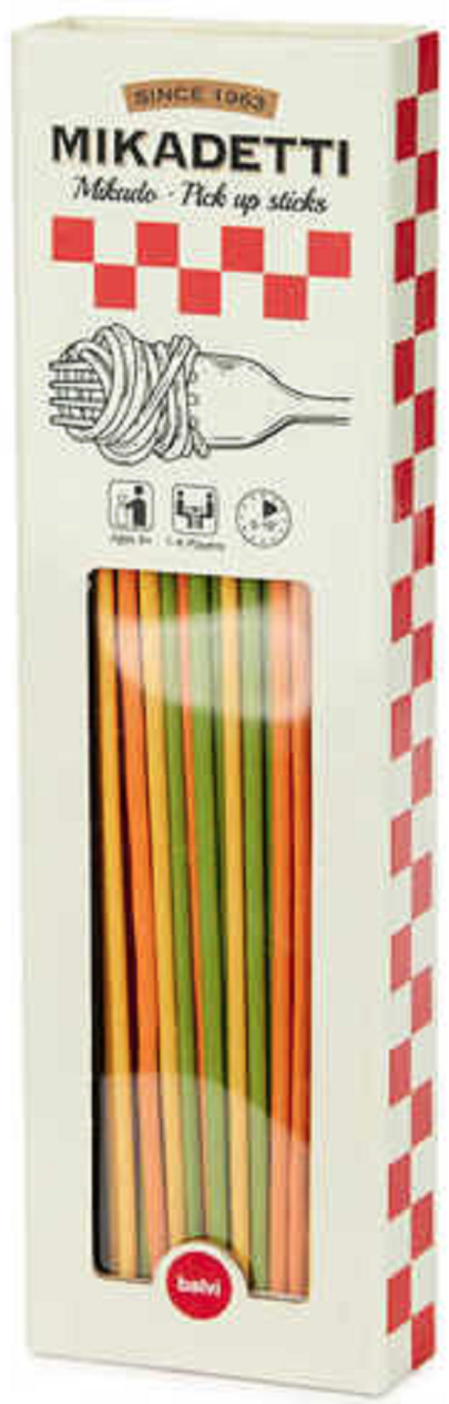 DESIGN ORIGINAL. Aceasta versiune de Mikado, inspirata din bucataria italiana, prezinta betisoare care seamana cu spaghetele in diferite arome. Cutia de joc este conceputa sa arate ca un pachet clasic de paste.DISTRACTIE. Ridica fiecare spagheta fara sa le faci pe celelalte sa se miste! Fiecare culoare aduce puncte diferite. Aduna cele mai multe puncte si castiga jocul!CADOU PERFECT. Un joc clasic cu o nota aparte pe care toata lumea il va iubi. In special iubitorii de jocuri si paste, precum si pasionatii de cultura italiana.JUCATORI. Potrivit pentru 2-8 jucatori (varsta 8+).Dimensiuni: 2,5x6,5x22,8 cm Material: bambus