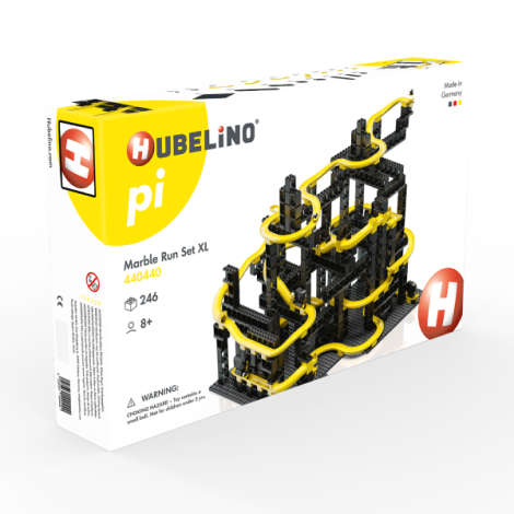 MARBLE RUN PI - SET XL (246 PIESE)Toate componentele Marble Run Set XL sunt compatibile cu componente comune de la alti producatori si, prin urmare, pot fi combinate in mod creativ cu blocurile de constructie si lumile tematice existente. La fel ca toate produsele de la Hubelino, Marble Run Set XL este fabricat in Germania la cele mai inalte standarde de calitate.https://youtu.be/QQiehLlPwO8 Setul Marble Run XL de 246 de piese este setul introductiv perfect in gama Hubelino pi, combinand viteza indrazneata si elemente de design sofisticate. Pe langa posibilitati de constructie nesfarsite, setul include patru tunuri magnetice care sunt lansatoare spiralate care le permit copiilor sa exploreze magnetismul si energia cinetica intr-un mod care distreaza si antreneaza. Construieste cai complicate si sisteme complicate de tuneluri, precum si sarituri bogate in actiune si pregateste-te sa eliberezi puterea neimblanzita a magnetismului.Setul format XL de 246 de piese contine toate componentele de care aveti nevoie pentru o constructie uriasa de marble run: 4 tunuri magnetice impusca bilele prin tuneluri sau peste rampe indraznete la viteze vertiginoase. Fiecare set include 84 de elemente de rulare si 134 de elemente de constructie pentru a oferi inaltime si stabilitate. Acest lucru le permite celor 12 bile de otel sa parcurga distante lungi in timp ce se rasucesc si se rotesc pe traseul de marble run. Setul include, de asemenea, doua placi de baza patrate care pot fi folosite ca o baza excelenta pentru proiectul dvs. de constructie sau ca niveluri in structura dvs. De asemenea, sunt incluse 10 adaptoare de tunel pentru a mentine bilele de otel care se misca rapid pe drumul cel bun. Setul Marble Run XL include o brosura de instructiuni cu instructiuni bine ilustrate pas cu pas.Dimensiuni cutie: 33.5 x 55 x 9.2 cm;Greutate: 1.613 kg.