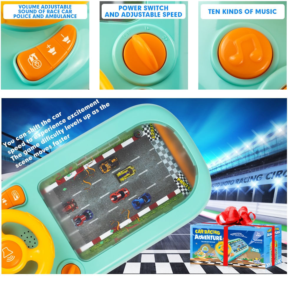 Lasa-ti copilul sa devina un profesionist!/nJucaria noastra tip simulator cu volan este conceputa pentru a oferi o experienta de conducere autentica, cu un volan confortabil si butoane intuitive, astfel incat copiii sa se poata concentra pe experienta de conducere si sa se simta ca si cum ar fi intr-o masina reala./nDe ce sa alegi jucaria simulator pentru copii?/n- Copilul o sa invete cum sa fie un pilot de mic/n- O sa invete sa fie educat si respectuos/n- Potrivit pentru orice varsta/n Este foarte stabila si nu se va dezlipii de masa!/nDe asemenea, jucaria noastra tip simulator cu volan poate fi folosita si pentru a imbunatati abilitatile motorii fine ale copiilor, precum si abilitatile cognitive si de rationament./nPrin intermediul acestei jucarii, copiii pot dezvolta abilitati importante care ii vor ajuta in viata de zi cu zi./nSpecificatii:/nDimensiuni: 38 x 11.99 x 20.98 cm/nContinut pachet:/n1x Jucarie tip simulator cu volan pentru copii