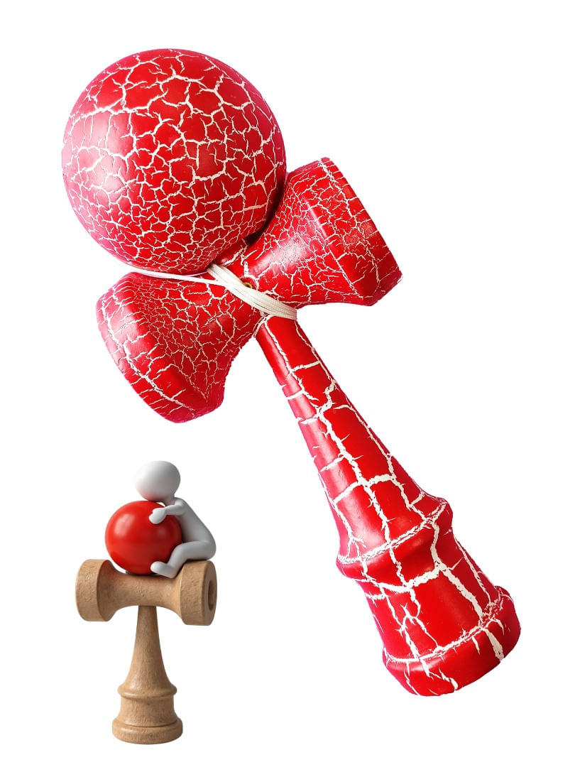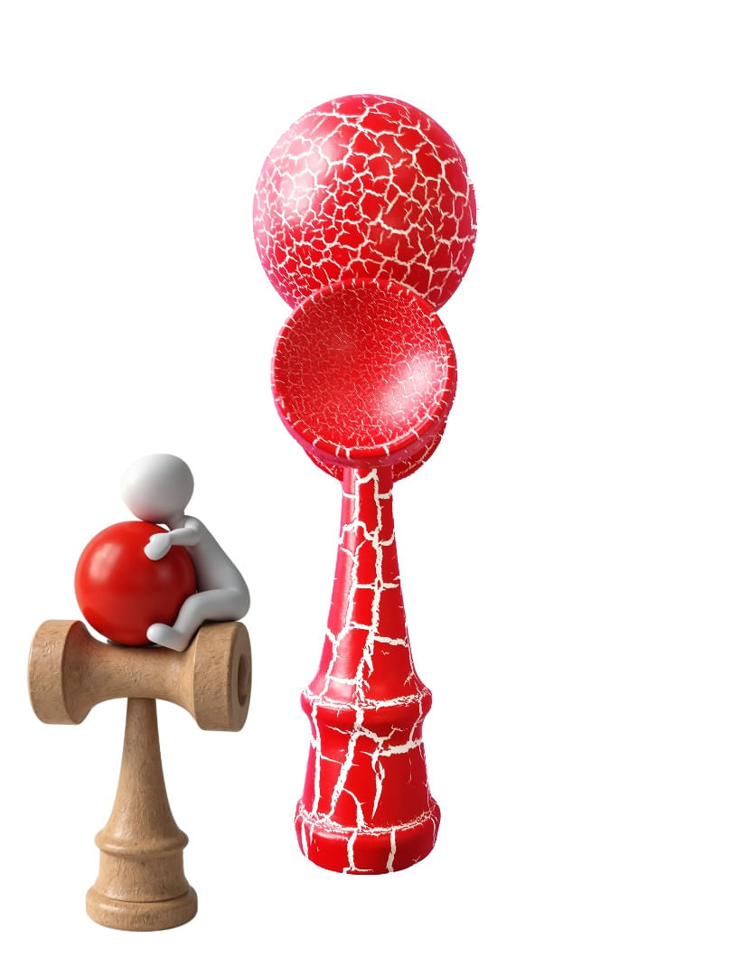 Kendama Profesionala, Bila din lemn, Design artistic cu finisaj Crapatura + Sticker pentru Telefon Aceasta kendama de calitate profesionala este ideala pentru pasionati si incepatori deopotriva. Realizata integral din lemn, cu un finisaj decorativ tip crapatura, ofera un aspect texturat, artistic si unic. 1 x Sticker decorativ (6 cm), ideal pentru telefon sau alte suprafete 1 x Kendama Caracteristici: Design clasic cu 2 cupe: Doua cupe laterale (una mare si una mica), ideale pentru trick-uri de baza si avansate. Spike ascutit: Situat in partea superioara a manerului, perfect pentru trick-uri ce implica prinderea bilei in orificiul central. Bila (Tama): Fabricata din lemn, cu acelasi efect crapat ca restul kendamei, atasata cu sfoara rezistenta. Sticker decorativ inclus: Dimensiune 6 cm, perfect pentru telefon sau orice alt suport creativ. Dimensiuni kendama: 18 x 7 cm Utilizare: Kendama este un joc traditional japonez de indemanare, care dezvolta coordonarea, concentrarea si reflexele. Modelul clasic cu 2 cupe este ideal pentru antrenamente precise si trick-uri fundamentale. Recomandare de varsta: 6 ani+Aceasta este o kendama excelenta pentru cei care cauta o combinatie intre design deosebit si functionalitate, dar si un cadou inspirat pentru orice ocazie!Avertizari de siguranta:Atentie! Nu lasati la indemana copiilor sub 6 ani. Acest produs contine sfoara si bila din lemn – pericol de strangulare sau sufocare. A se utiliza doar sub supravegherea unui adult.