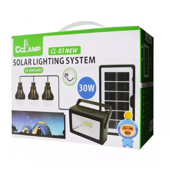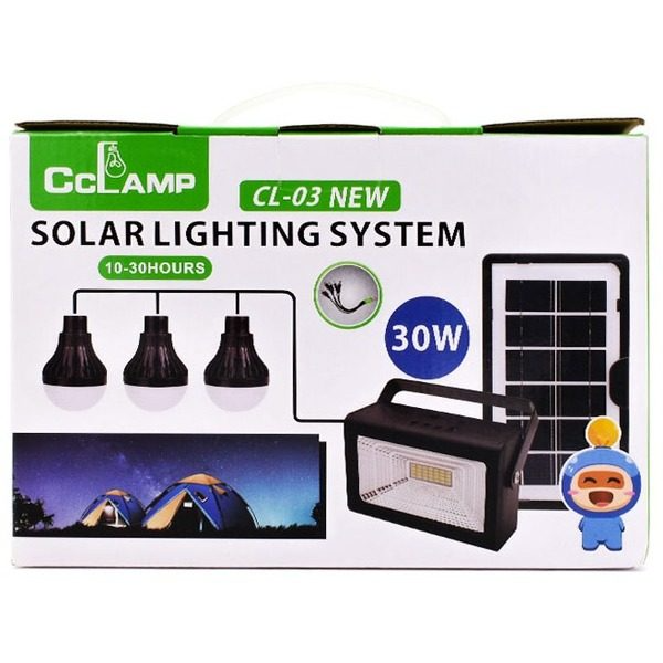 Sistem de Iluminat Solar cu 3 Becuri LED SMD Lanterna, Panou Solar, Incarcare Solara Alimentare la Retea 5V USB, 30 W Culoare Negru Putere 30 W Timp incarcare 8 h Autonomie 8 h Amperaj iesire 4 A Capacitate baterie 3200 mAh Tip baterie Li-Ion Greutate 1 kg Kit solar cu 3 becuri LED, mini proiector 30 W si power bank pentru incarcarea dispozitivelor mobile 2 in 1. Cel mai potrivit instrument pentru camping, excursii, pentru a avea mereu si oriunde lumina si energie pentru dispozitivele tale. Panou solar: Putere: 4W Tensiune maxima: 6V Curent minim: 0,63 A Dimensiuni: 270 x 155 x 13 mm Proiector - baterie Putere: 30 W Tensiune de intrare DC: 5V ~ 6V Tensiune de iesire DC: 3,7 V Iesire USB: 5V Curent maxim: 2A Panou solar de 6V Dimensiuni: 170 x 65 x 110 mm Lampi cu LED-uri: Putere: 3 W Tensiune: 3-6V Cablu: 4m Perioada de valabilitate: ≥5 ani Cantitate: 3 bucati Dimensiuni: 60 mm x 85 mm.