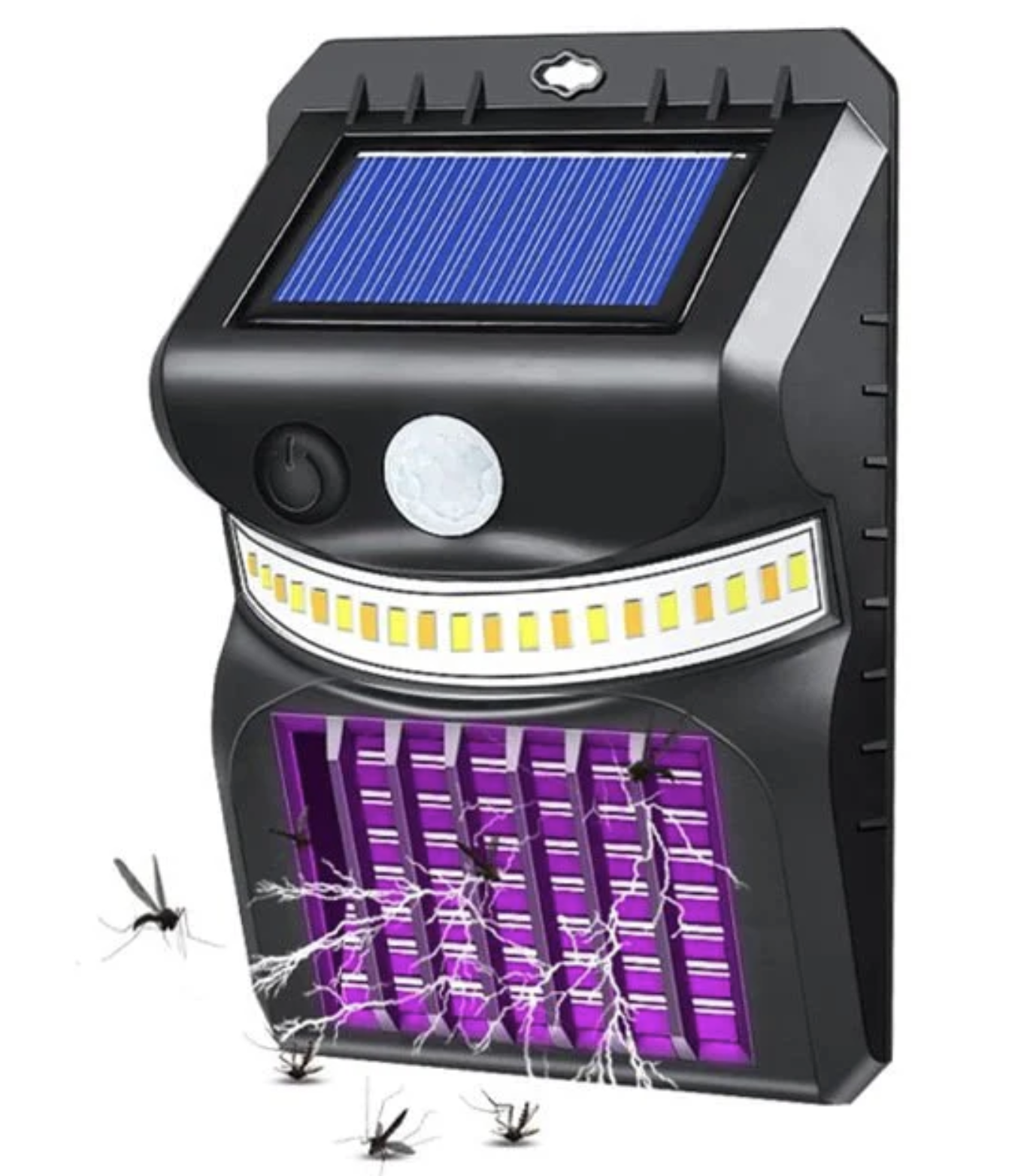 Lampa solară cu funcție anti-țânțari este un iluminat de exterior multifuncțional care combină energia solară eficientă cu tehnologia avansată de respingere a țânțarilor. Ideală pentru grădini, terase, camping și alte zone exterioare, această lumină oferă o atmosferă sigură și confortabilă, fără țânțari enervanti. Ideal pentru utilizare în aer liber, acest instrument vă oferă un spațiu sigur și confortabil fără prezența insectelor deranjante. LED-uri strălucitoare care oferă suficientă iluminare pentru activități în aer liber, camping, terase, grădini și multe altele. Designul compact îl face ușor de transportat și plasat oriunde. Combină funcția de respingere a insectelor cu iluminarea, oferind un dublu beneficiu într-un singur dispozitiv. Caracteristici: Material: ABS compact și durabil Unghi de detectare a mișcării: 170 de grade Distanța de detectare a mișcării LED: 11 LED 5730 Lumină albă LED UV: 5 LED UV (lumină violetă) Timp de funcționare: 3-4 ore iluminare continuă și ~ 10 ore cu detectarea mișcării Timp de încărcare: ≤ 12 ore la soare Baterie: 1*18650, 1200mAh Dimensiuni: 15,5 x 10 x 5 cm