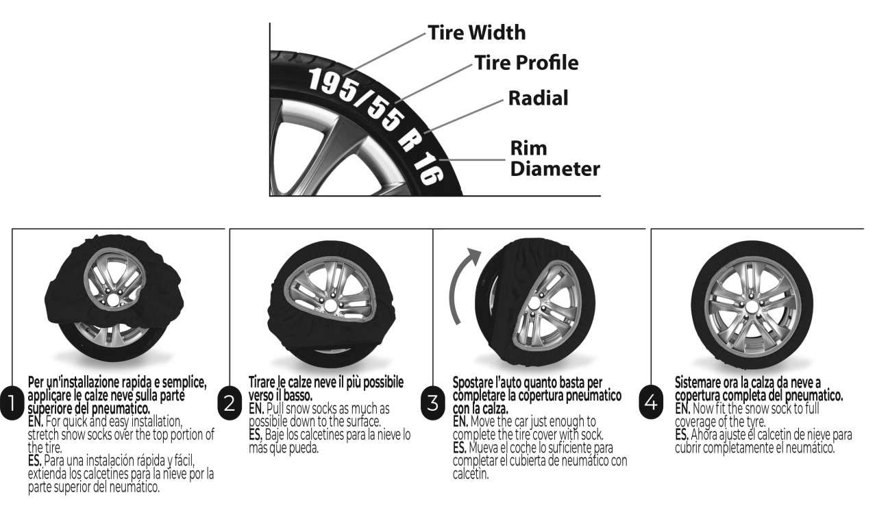 DAC Easy Go marime XL pentru anvelope 235/70 R14 , lanturi auto textile, huse antiderapante pentru masina ta Husele antiderapante de zapada DAC Easy Go sunt perfecte pentru momentele in care sezonul de iarna iti face proeuropene de siguranta si performanta, asigurand aderenta optima pe zapada si gheata. Proiectate pentru compatibilitate cu diverse tipuri de vehicule, acestea ofera o utilizare eficienta, fara a deteriora anvelopele, si sunt conforme cu reglementarile legale din intreaga UE. Practic, in tari precum Germania, Franta, Italia, lanturile auto metalice pot fi inlocuite de husele antiderapante. Husele antiderapante de zapada DAC Easy Go sunt perfecte pentru momentele in care sezonul de iarna iti face probleme cu aderenta cauciucurilor masinii. Husele antiderapante de la DAC sunt omologate, certificate si testate pentru siguranta folosirii in circulatia europeana. DAC Easy Go se monteaza pe cauciucurile autoturismului atunci cand zapada sau poleiul iti afecteaza aderenta rotilor. DAC Easy Go este compatibil cu mai multe variante de masini precum SUV-uri sau masini 4x4, dar si masini de oras, berline ori compacte. Husele antiderapante de la DAC lucreaze eficient impotriva zapezii si a ghetei aflate pe suprafata carosabila. DAC Easy Go, solutia antiderapanta eficienta Folosind DAC Easy Go veti obtine o aderenta sporita in sezonul de iarna pe orice suprafata cu zapada sau gheata. Husele antiderapante de la DAC sunt construite special si testate pe diverse suprafete cu gheata sau zapada. Pachetul de produs al Dac Easy Go contine 2 x huse antiderapante si o pereche de manusi pentru instalarea produsului pe cauciucurile masinii. DAC Easy Go se monteaza in aproximativ 2 minute si cuprinde integral profilul anvelopelor conferind aderenta deplina. Instalarea huselor antiderapante DAC se face pe rotile care ofera cea mai mare tractiune pentru autoturism. Husele DAC pot fi spalate manual in maximum 30 de minute si sunt usor de transportat sau stocat. DAC Easy Go nu provoaca deteriorare cauciucurilor si nu produc vibratii sau sunete nefamiliare in mers. Producatorul sfatuieste folosirea acestor huse cu o viteza maxima de 30 de km/ora pe suprafete cu gheata sau zapada. Material de fabricatie DAC Easy Go: polipropilena special tratata. LISTA COMPATIBILITATE DIMENSIUNI DE ANVELOPE/CAUCIUCURI (Consultati inainte de a achizitiona produsul) Lanturile se potrivesc pentru urmatoarele dimensiuni de anvelope: 13 14 15 16 17 18 19 20 21 22 23 24 25 26 X-Large 215/80 R14 195/80 R15 175/80 R16 185/70 R17 215/55 R18 155/70 R19 175/55 R20 235/70 R14 195/85 R15 185/80 R16 195/75 R17 215/60 R18 175/60 R19 195/50 R20 265/70 R14 205/75 R15 195/75 R16 205/65 R17 225/55 R18 195/50 R19 195/55 R20 205/80 R15 195/80 R16 205/75 R17 225/60 R18 205/50 R19 235/30 R20 215/75 R15 195/85 R16 215/60 R17 235/50 R18 205/55 R19 235/35 R20 215/80 R15 205/70 R16 215/65 R17 235/55 R18 215/50 R19 235/40 R20 225/70 R15 205/75 R16 215/70 R17 235/60 R18 225/45 R19 235/45 R20 225/75 R15 205/80 R16 225/60 R17 245/50 R18 225/50 R19 235/50 R20 235/70 R15 215/65 R16 225/65 R17 245/55 R18 225/55 R19 245/40 R20 235/75 R15 215/70 R16 235/55 R17 255/45 R18 235/45 R19 245/45 R20 255/60 R15 215/75 R16 235/60 R17 255/50 R18 235/50 R19 255/35 R20 255/65 R15 225/65 R16 235/65 R17 255/55 R18 235/55 R19 255/40 R20 255/70 R15 225/70 R16 245/55 R17 265/45 R18 245/45 R19 255/45 R20 275/60 R15 225/75 R16 255/50 R17 275/45 R18 245/50 R19 265/35 R20 235/60 R16 255/55 R17 255/40 R19 265/40 R20 235/65 R16 255/60 R17 255/45 R19 275/35 R20 235/70 R16 265/55 R17 255/50 R19 275/40 R20 245/60 R16 275/55 R17 265/40 R19 285/30 R20 255/65 R16 275/40 R19 295/35 R20 265/60 R16 275/45 R19 285/35 R20 285/40 R20 295/40 R20 235/45 R21 245/35 R21 245/40 R21 255/40 R21 265/35 R21 275/30 R21 275/35 R21 295/35 R21 Omologarea EN 16662-1:2020 reprezintă o standardizare europeană pentru echipamentele antiderapante utilizate pe drumurile acoperite cu zăpadă sau gheață, cum ar fi lanțurile textile, lanțurile metalice sau alte dispozitive similare. Aceasta garantează că produsele respectă cerințele tehnice și de siguranță stabilite de Uniunea Europeană. Iată ce implică această omologare: 1. Siguranță și Performanță Standardul verifică eficiența produselor în condiții reale de utilizare, asigurând că acestea oferă aderența necesară pe suprafețe alunecoase fără a compromite siguranța șoferului sau a vehiculului. 2. Compatibilitate cu Vehiculul EN 16662-1:2020 include cerințe privind modul în care dispozitivele antiderapante interacționează cu roțile vehiculului. Se verifică dacă: Nu afectează sistemele de frânare (ex. ABS, ESP). Nu deteriorează anvelopele sau jantele. 3. Calitate Materiale Materialele utilizate trebuie să fie rezistente la uzură, să nu deterioreze suprafețele carosabile și să fie sigure pentru utilizator. 4. Ușurință în Instalare și Demontare Standardul specifică și că echipamentele trebuie să fie ușor de montat și demontat, chiar și în condiții dificile (frig, zăpadă, gheață). 5. Conformitate Legală în Europa Dispozitivele care au omologarea EN 16662-1:2020 sunt acceptate legal în toate țările din Uniunea Europeană, inclusiv în zonele unde utilizarea echipamentelor antiderapante este obligatorie în sezonul de iarnă. Pentru produsele omologate conform acestui standard, clienții pot fi siguri că achiziționează un produs de înaltă calitate, potrivit cerințelor europene de siguranță și eficiență.
