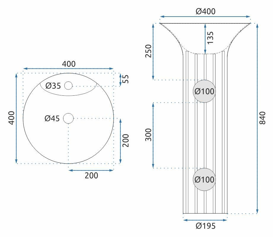 Chiuveta de sine stătătoare din ceramică este un produs unic conceput având în vedere aspectul și funcționalitatea. Designul incredibil de modern se va potrivi perfect în orice baie cu design elegant. Forma clasică a bolului, o gaură pentru robinet și un preaplin îl fac o alegere practică în baia ta.