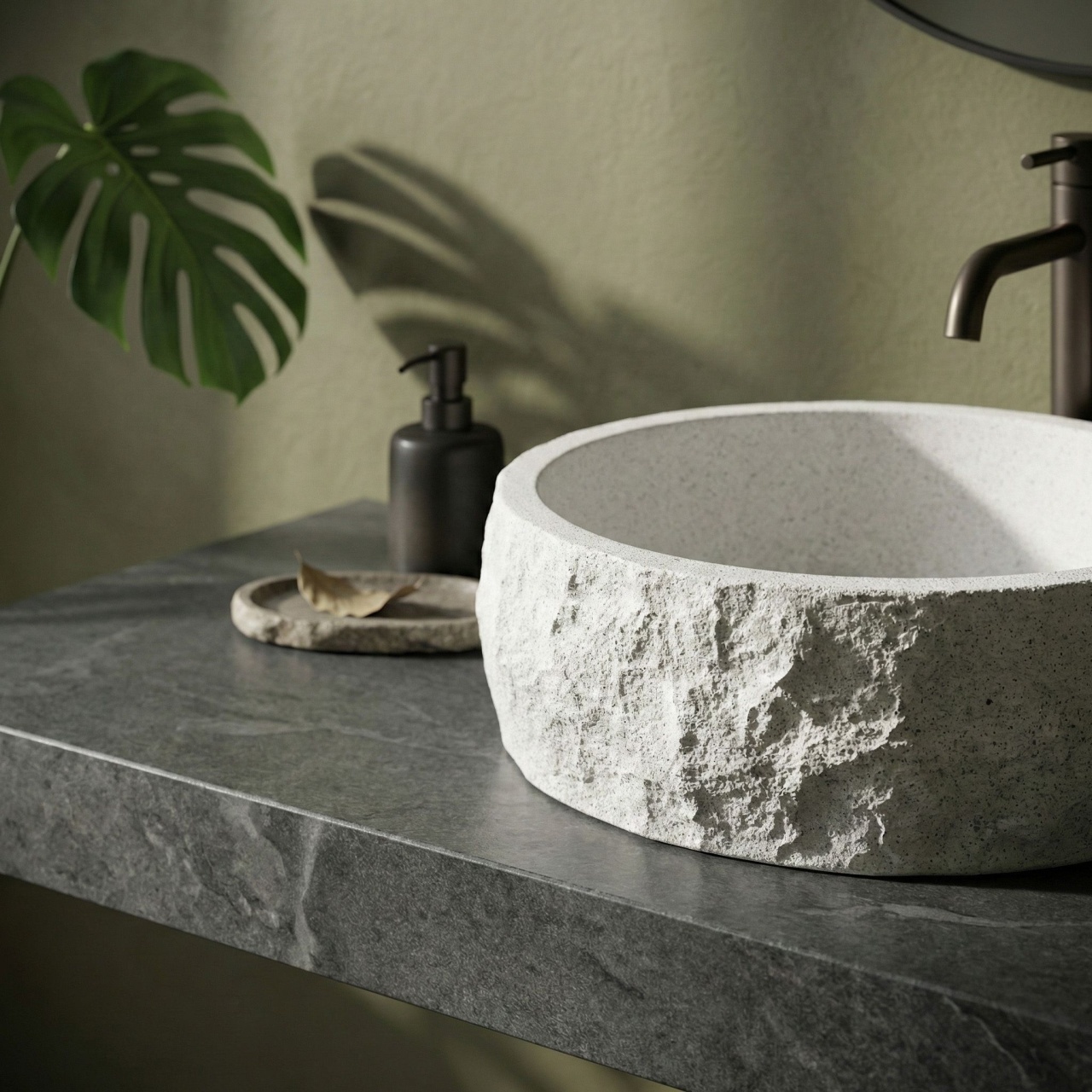 Alege lavoarul pe blat Rea Alice dacă îți dorești un accent natural, expresiv pentru baia ta. Acest model rotund combină aspectul brut al pietrei cu funcționalitatea modernă și confortul în utilizarea zilnică.Material Artificial Stone – lavoarul este realizat din piatră artificială compozită, solidă. Este un material foarte durabil, rezistent la deteriorări și ciobiri, fiind totodată mai cald și mai plăcut la atingere decât ceramica obișnuită.Textură de piatră spartă – suprafața exterioară a cuvei amintește de stânca brută, neprelucrată. Suprafața deschisă cu stropiri fine și structura neregulată, rugoasă conferă formei un caracter artizanal deosebit.Interior neted – în contrast puternic cu carcasa texturată, interiorul lavoarului este perfect neted. Astfel, apa se scurge liber către sifon, iar întreținerea zilnică este rapidă și fără efort.Formă rotundă și montaj pe blat – forma clasică rotundă este foarte practică în utilizarea zilnică. Montajul direct pe blat sau pe mobilier permite evidențierea texturii decorative de „piatră” din toate unghiurile.Lavoarul Rea Alice este alegerea ideală pentru cei care apreciază designul inspirat de natură. Aspectul său brut arată excelent în interioare moderne, minimaliste și wabi-sabi, aducând în baie un accent organic puternic. Metodă de montaj: De blat Material: Artificial Stone (piatră compozită) Culoare: Alb, Imitație piatră Finisaj: Mat Lungime: 390 Latime : 390 Inalime: 145 Adâncime: 115 Formă: Rotund
