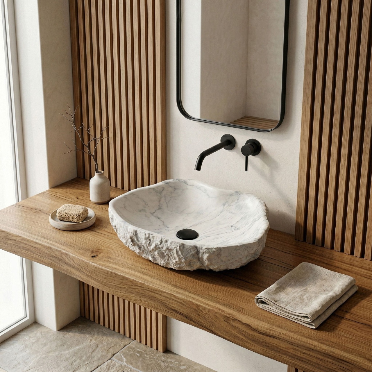 Creează în baia ta o zonă unică de relaxare cu lavoarul pe blat Rea Isla Marlo. Acest model aparte atrage privirea prin forma sa neregulată, organică, și prin finisajul care imită marmura. Realizat din piatră compozită artificială Artificial Stone, îmbină estetica brută cu durabilitatea modernă.Textura pietrei – suprafața exterioară a cuvei are o textură pronunțată, aspră, care amintește de roca neprelucrată, oferindu-i un caracter autentic și artizanal.Material Artificial Stone – compozitul utilizat este extrem de solid și rezistent la deteriorări mecanice, fiind în același timp mai plăcut și mai cald la atingere decât piatra naturală.Model marmorat – nuanța deschisă, îmbogățită cu vene gri expresive, imită structura marmurei naturale, introducând în interior eleganță și prestigiu.Interior neted – în contrast stilat cu textura exterioară brută, interiorul lavoarului este perfect neted, ceea ce asigură curățare ușoară și scurgerea liberă a apei.Montaj pe blat – lavoarul este conceput pentru a fi amplasat pe blat sau pe mobilierul de baie, astfel încât forma sa sculpturală, cu două texturi, să fie pe deplin pusă în valoare.Lavoarul Rea Isla Marlo este o alegere excelentă pentru băi în stil modern, glamour, precum și pentru interioare inspirate de apropierea de natură. Combinația dintre forma organică și motivul elegant de marmură îl face un element de amenajare extrem de spectaculos și practic. Metodă de montaj: De blat Material: Artificial Stone (piatră compozită) Culoare: Imitație piatră Finisaj: Mat Lungime: 490 Latime : 370 Inalime: 140 Adâncime: 110 Formă: Asimetric, Neconvențional