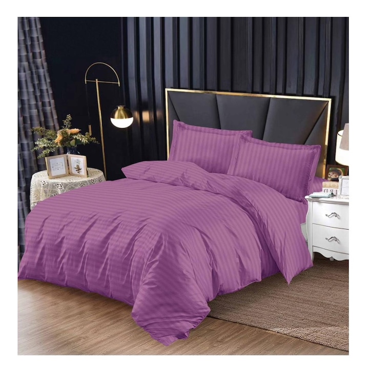 Lenjerie de pat 6 piese Material Bumbac - Damasc, Mov 1 x Cearcaf pilota: 200 x 230 cm 1 x Husa pat: 230 x 250 cm 2 x Fata perna: 55 x 80 cm 2 x Fata perna: 75 x 75 cm Material: bumbac Nu se folosesc inalbitori chimici Se spala pana la 40 C automat Dimensiunile pot avea o eroare ± 5 cm
