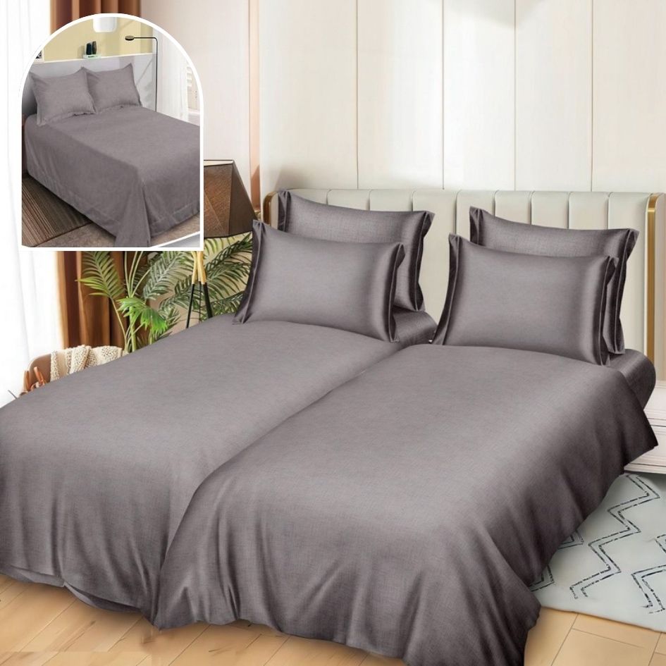 Lenjerie de Pat, 7 Piese, Bumbac Satinat Superior, cu 2 Pilote, Gri, Uni