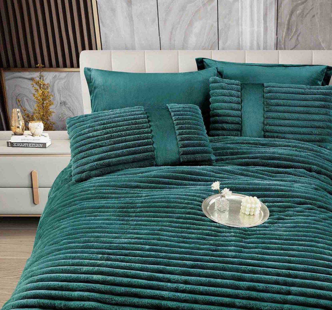 Lenjerie de pat cu Pilota Inclusa, Jojo Home, Cearceaf cu Elastic, 6 Piese, Blana de Iepure Artificiala, Verde