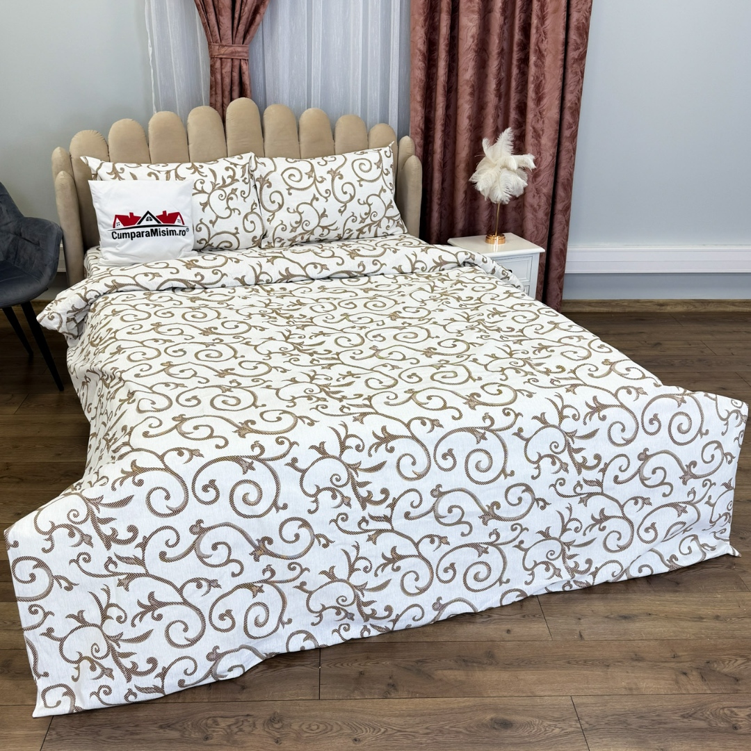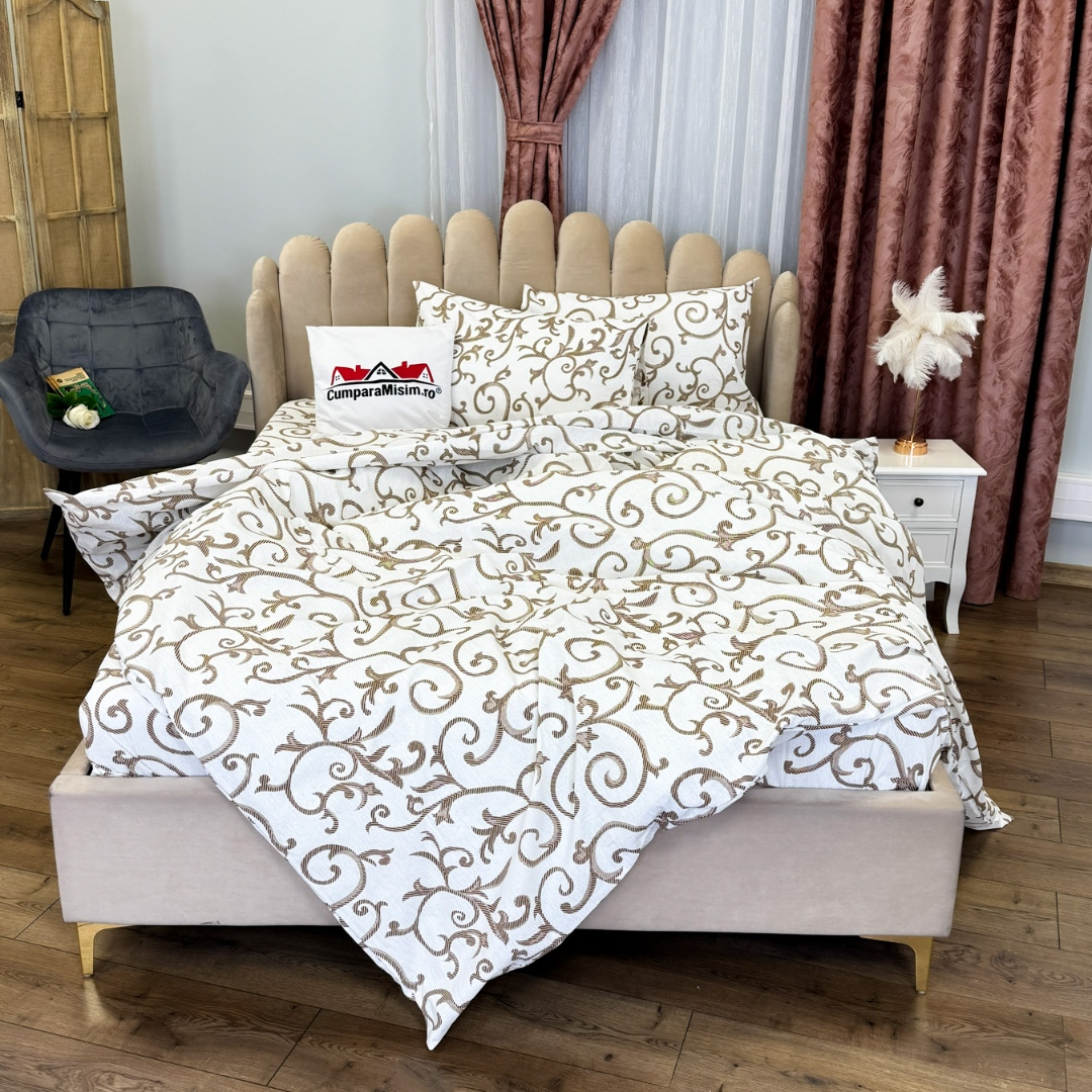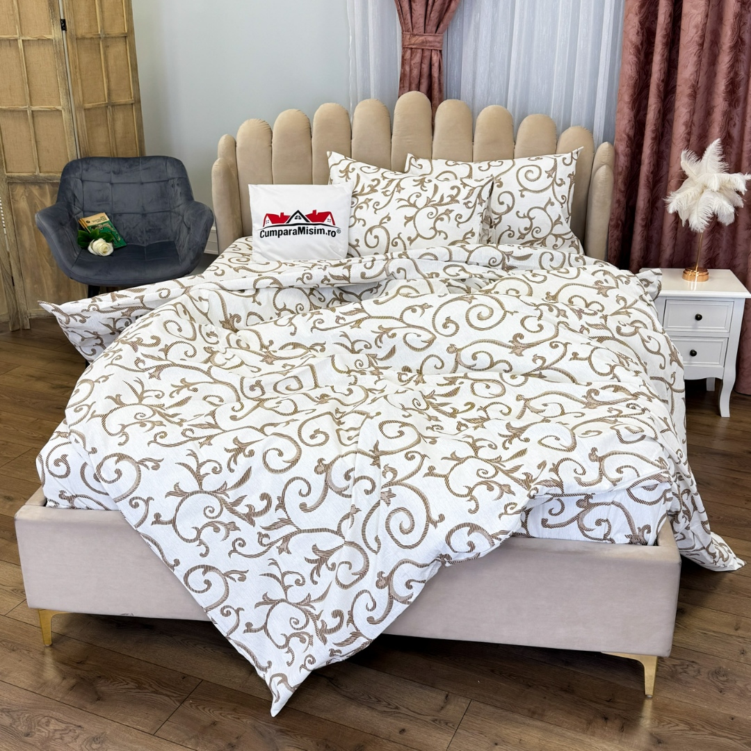 Lenjerie de pat dublu din policoton – 4 piese, realizata manual in atelierul Cumparamisim Confort, rezistenta si stil – toate intr-un singur set creat cu grija in Romania. Lenjeria de pat din policoton, Cumparamisim, imbina perfect calitatea bumbacului natural cu avantajele poliesterului, rezultand un produs durabil, usor de intretinut si placut la atingere. Croita manual in atelierul nostru, aceasta lenjerie aduce un plus de rafinament dormitorului tau si sustine munca artizanilor loc