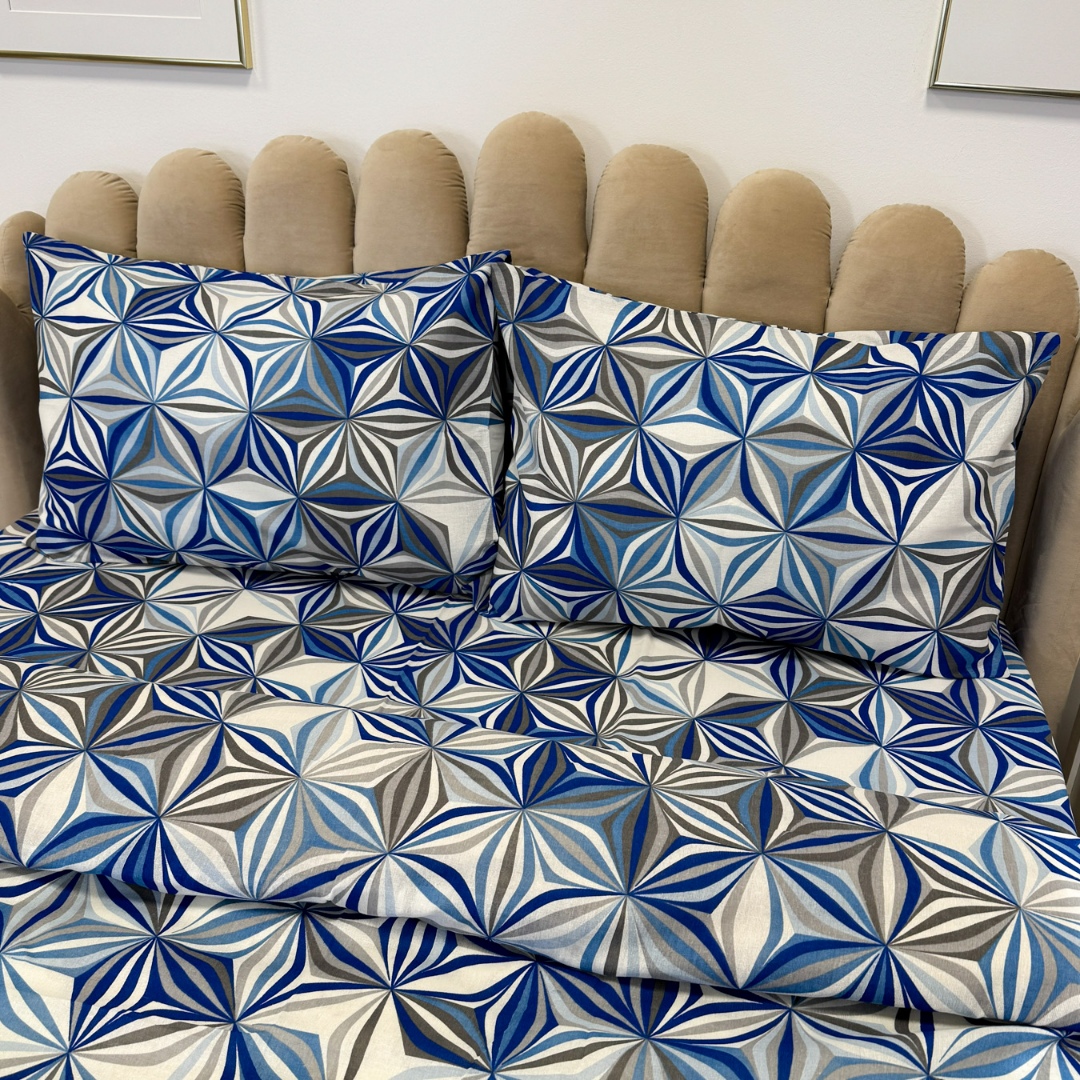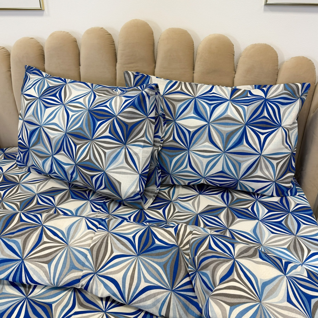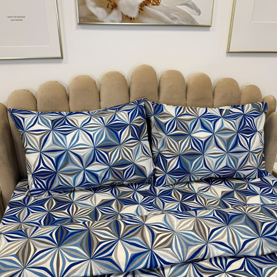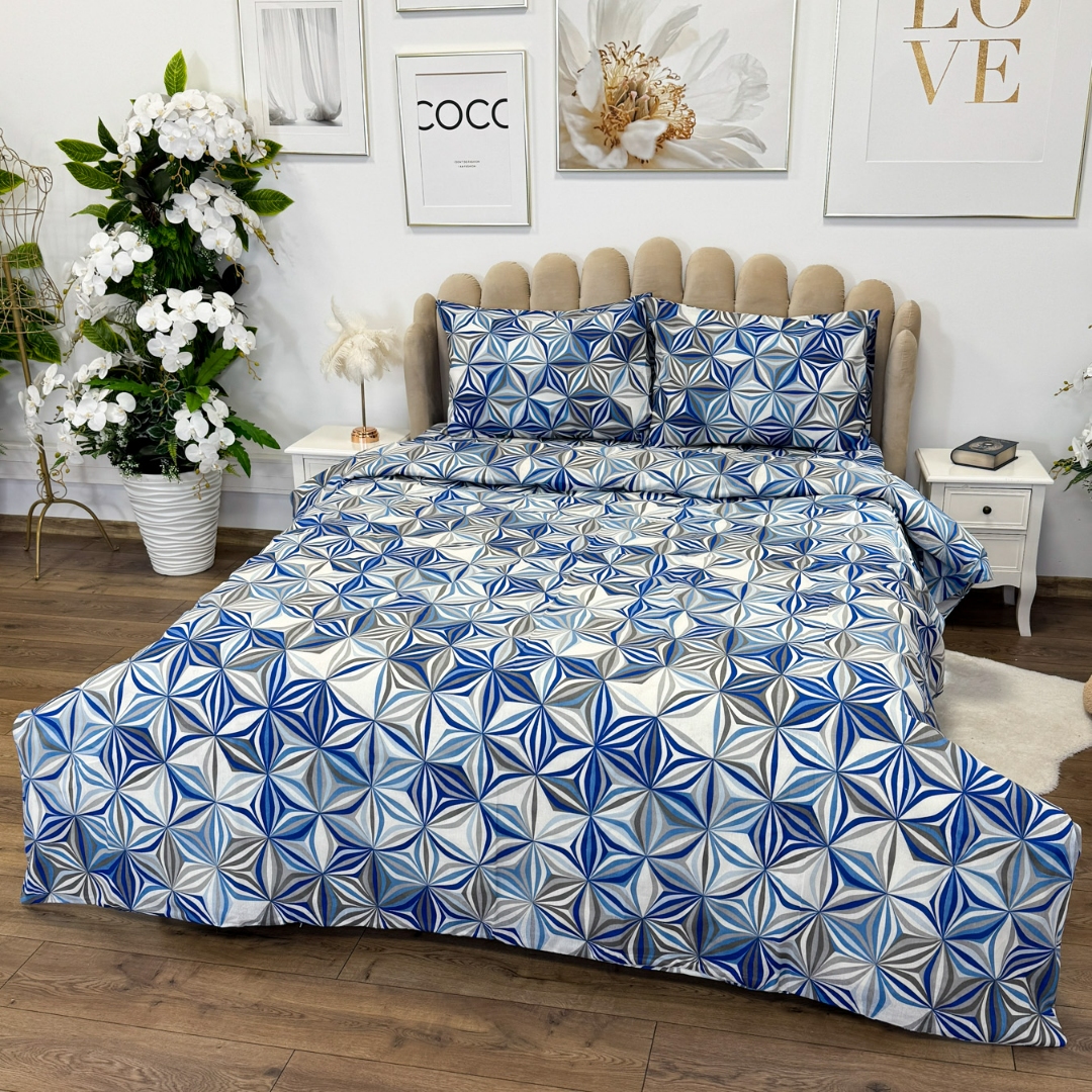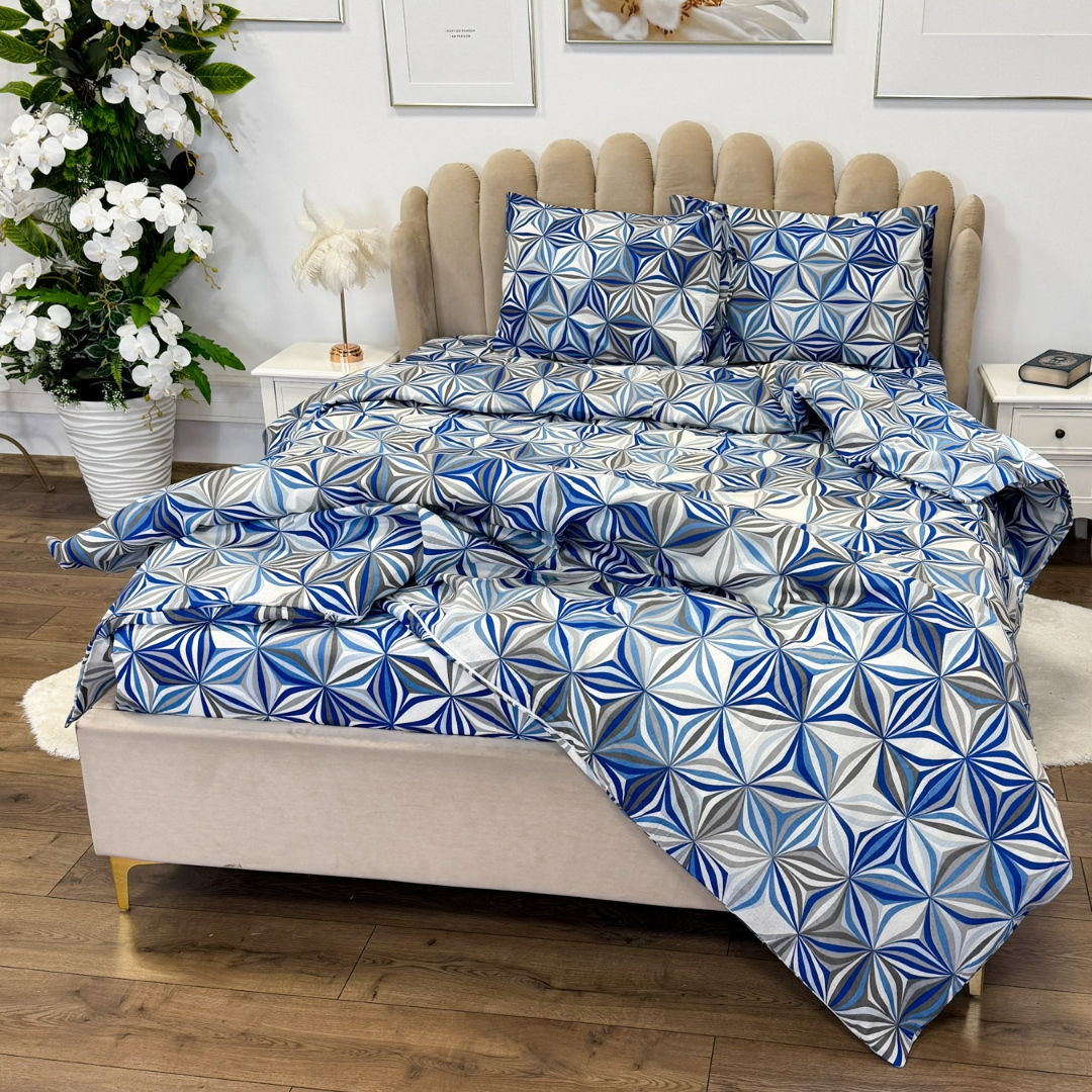 Lenjerie de Pat Dublu, Policoton Ranforsat, 4 piese, Atelier Cumparamisim, Albastru, model elegant