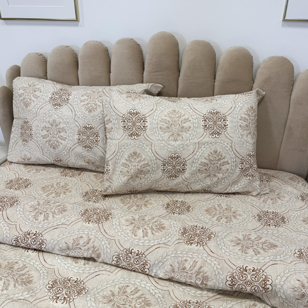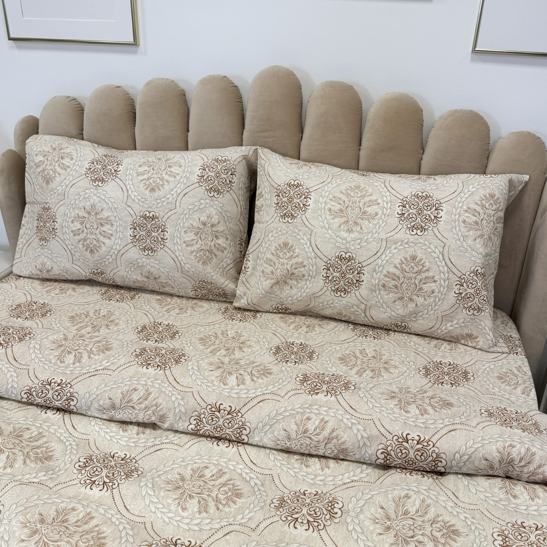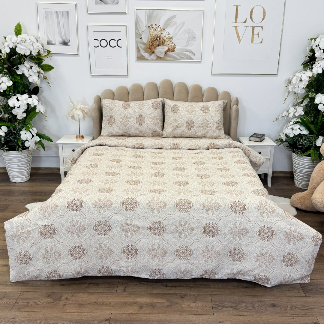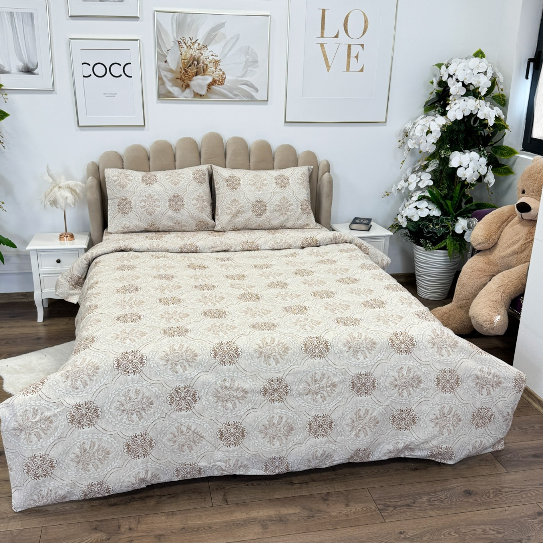 Lenjerie de Pat Dublu, Policoton Ranforsat, 4 piese, Atelier Cumparamisim, Bej, model elegant