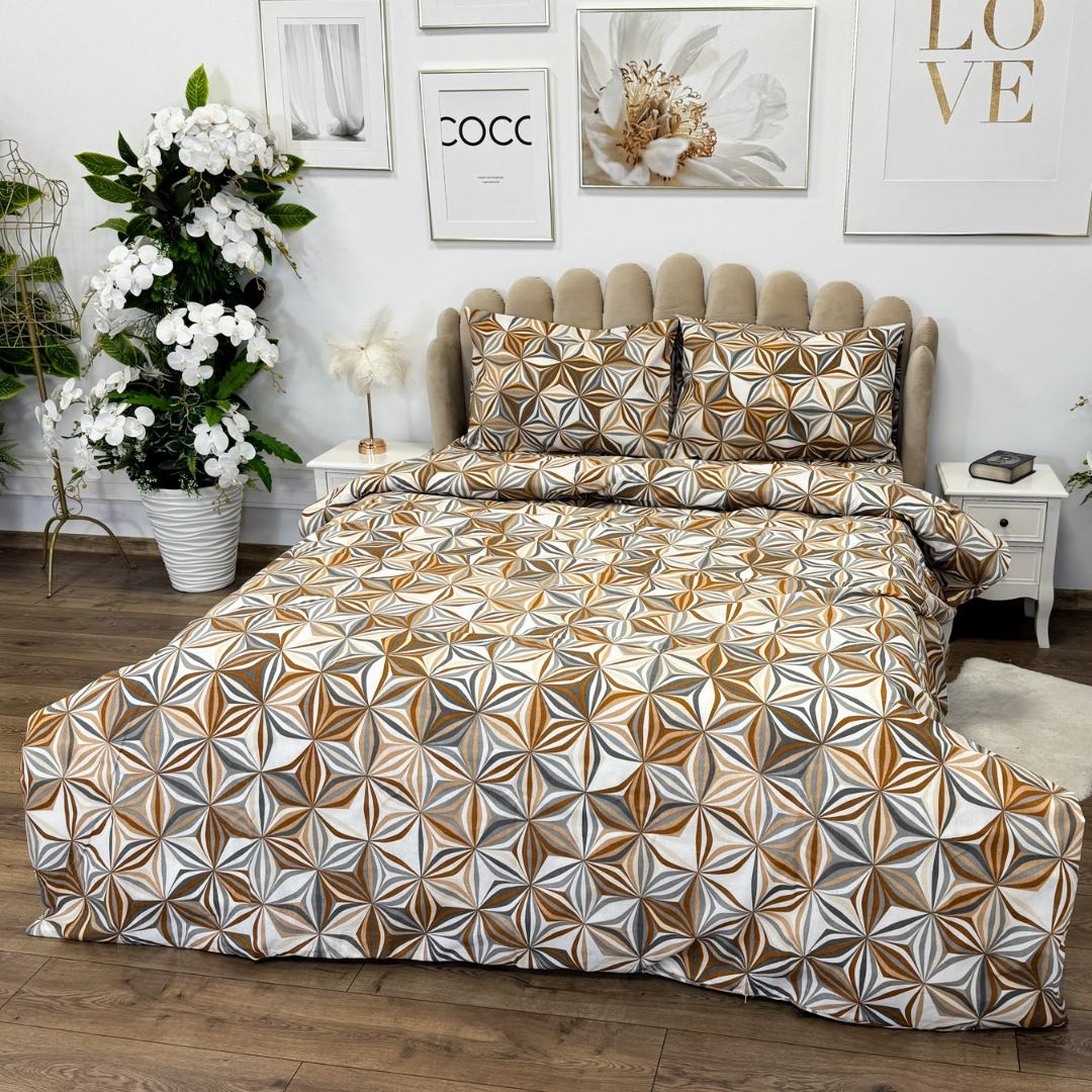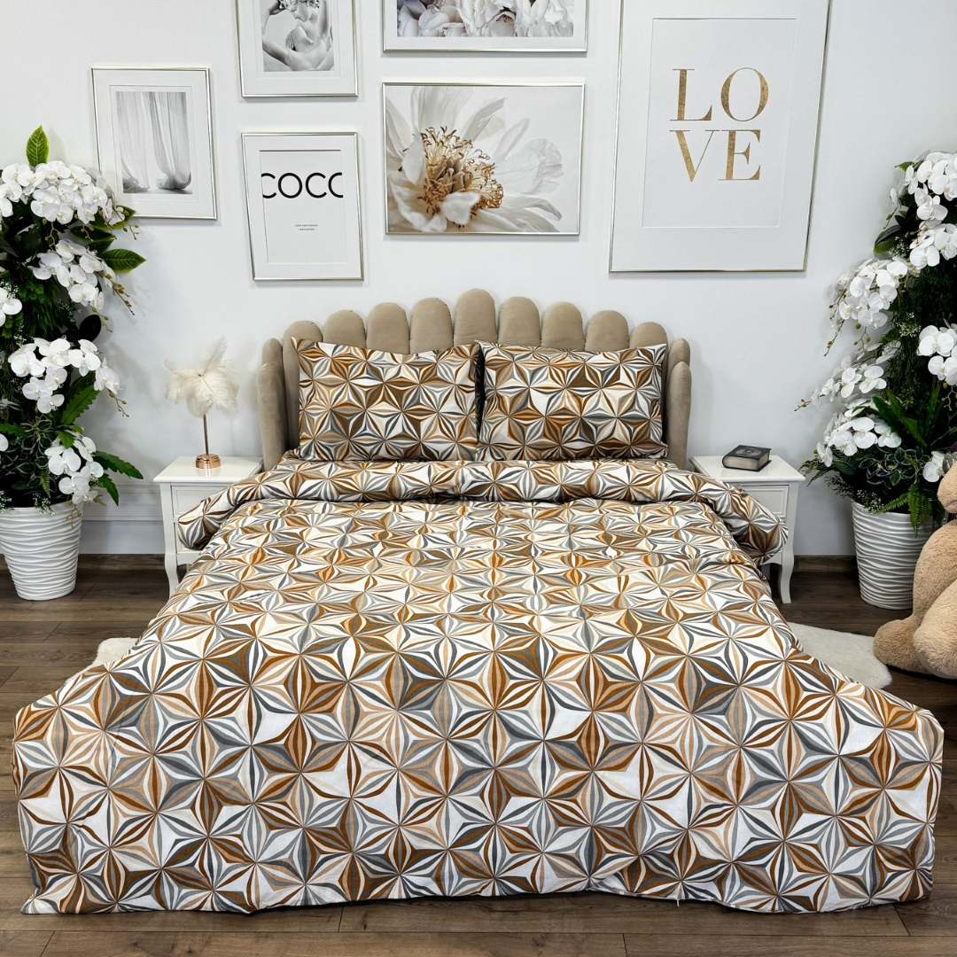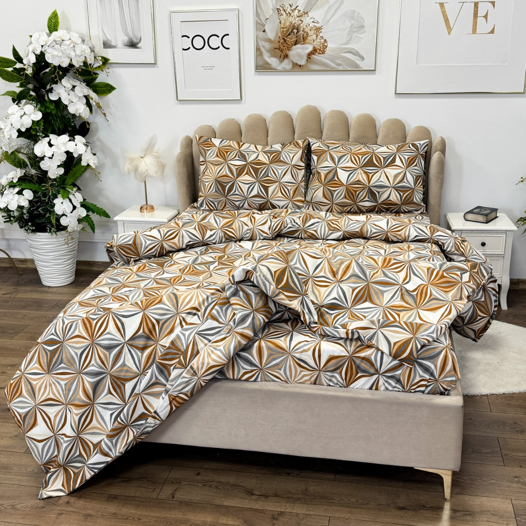 Lenjerie de Pat Dublu, Policoton Ranforsat, 4 piese, Atelier Cumparamisim, Maro, model clasic