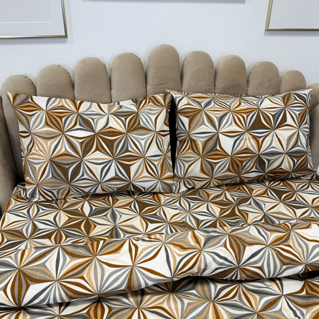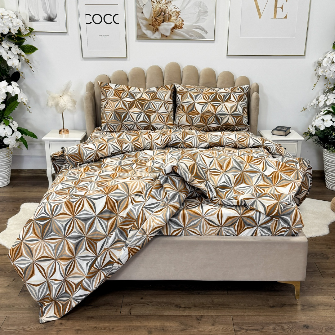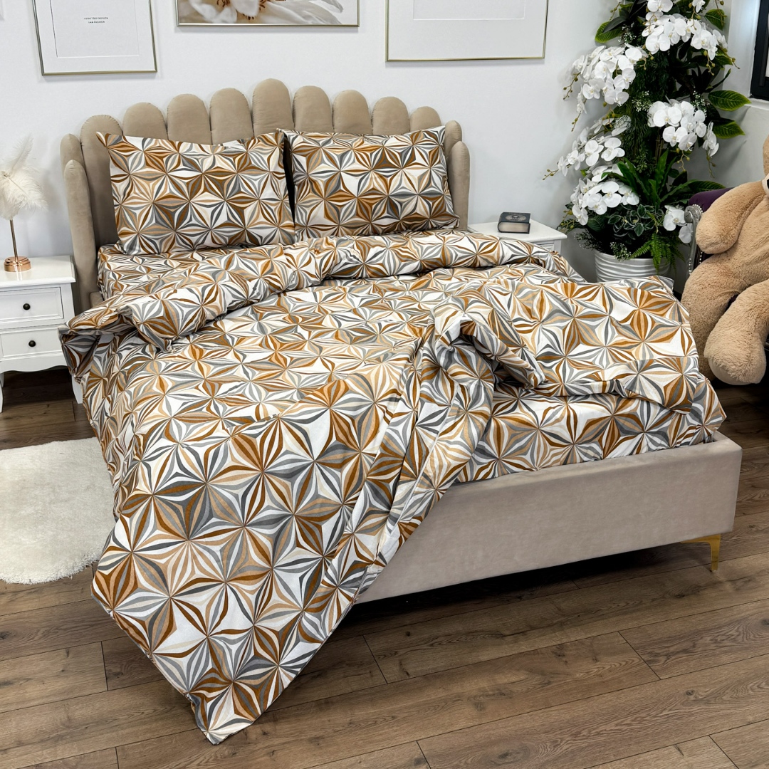 Lenjerie de Pat Dublu, Policoton Ranforsat, 4 piese, Atelier Cumparamisim, Maro, model clasic