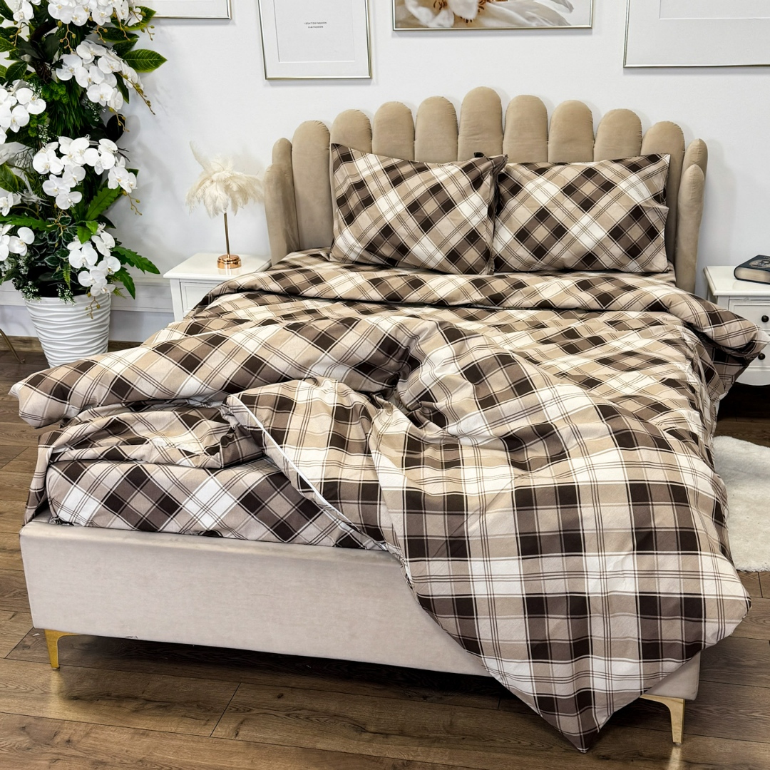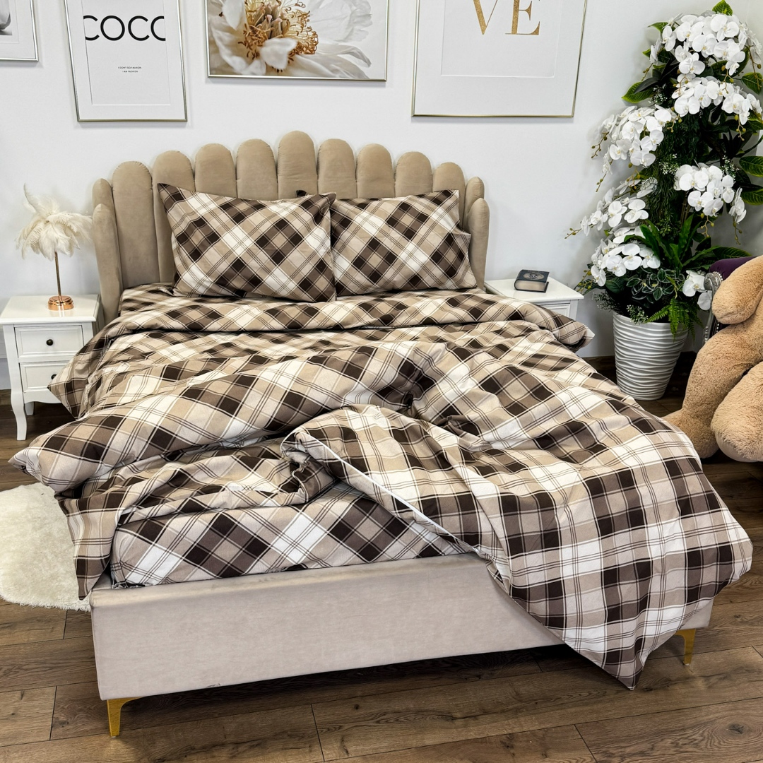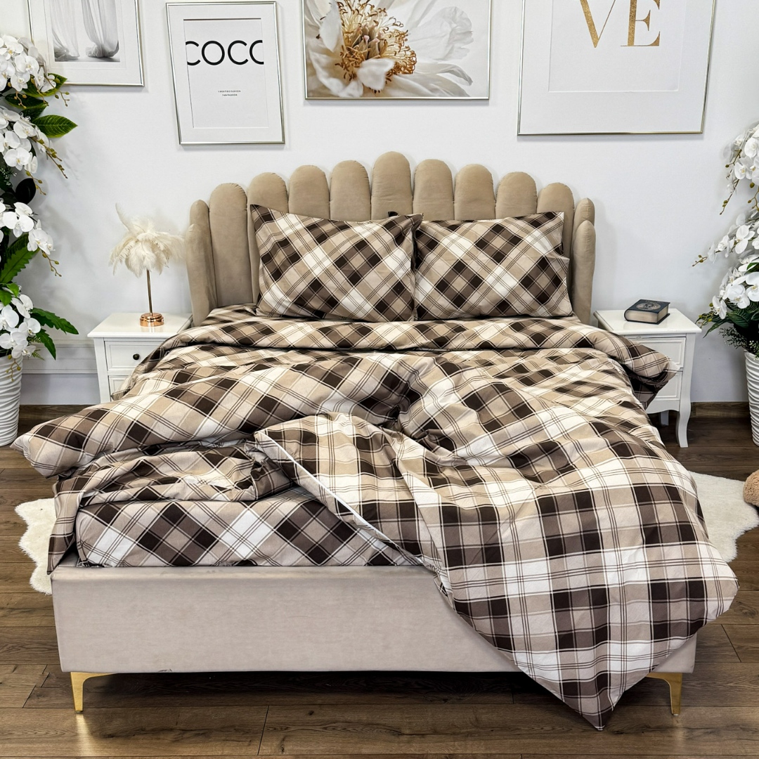 Lenjerie de Pat Dublu, Policoton Ranforsat, 4 piese, Atelier Cumparamisim, Maro, romburi