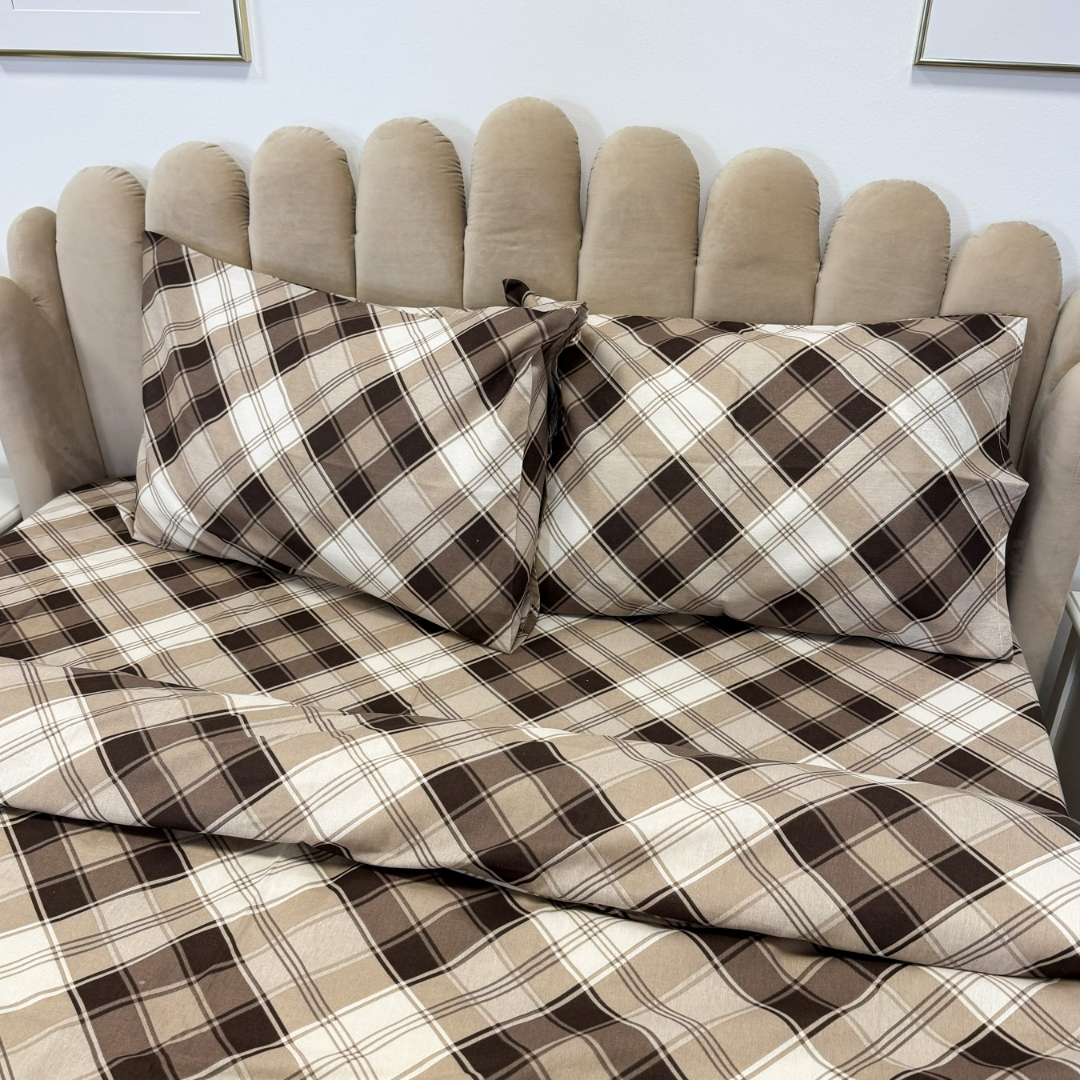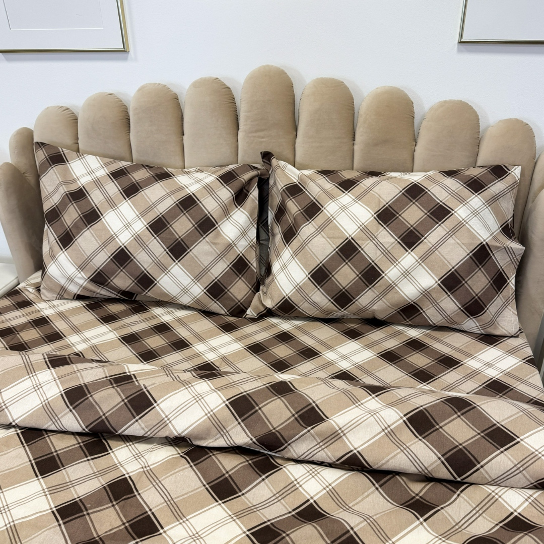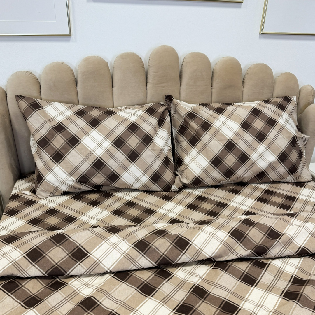 Lenjerie de Pat Dublu, Policoton Ranforsat, 4 piese, Atelier Cumparamisim, Maro, romburi