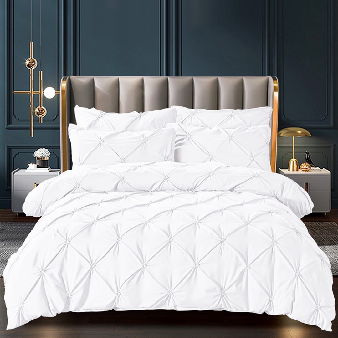 Lenjerie de Pat Premium, JOJO HOME, Finet cu Pliuri Brodate, 6 Piese, Nesifonabila si Durabila, Alb